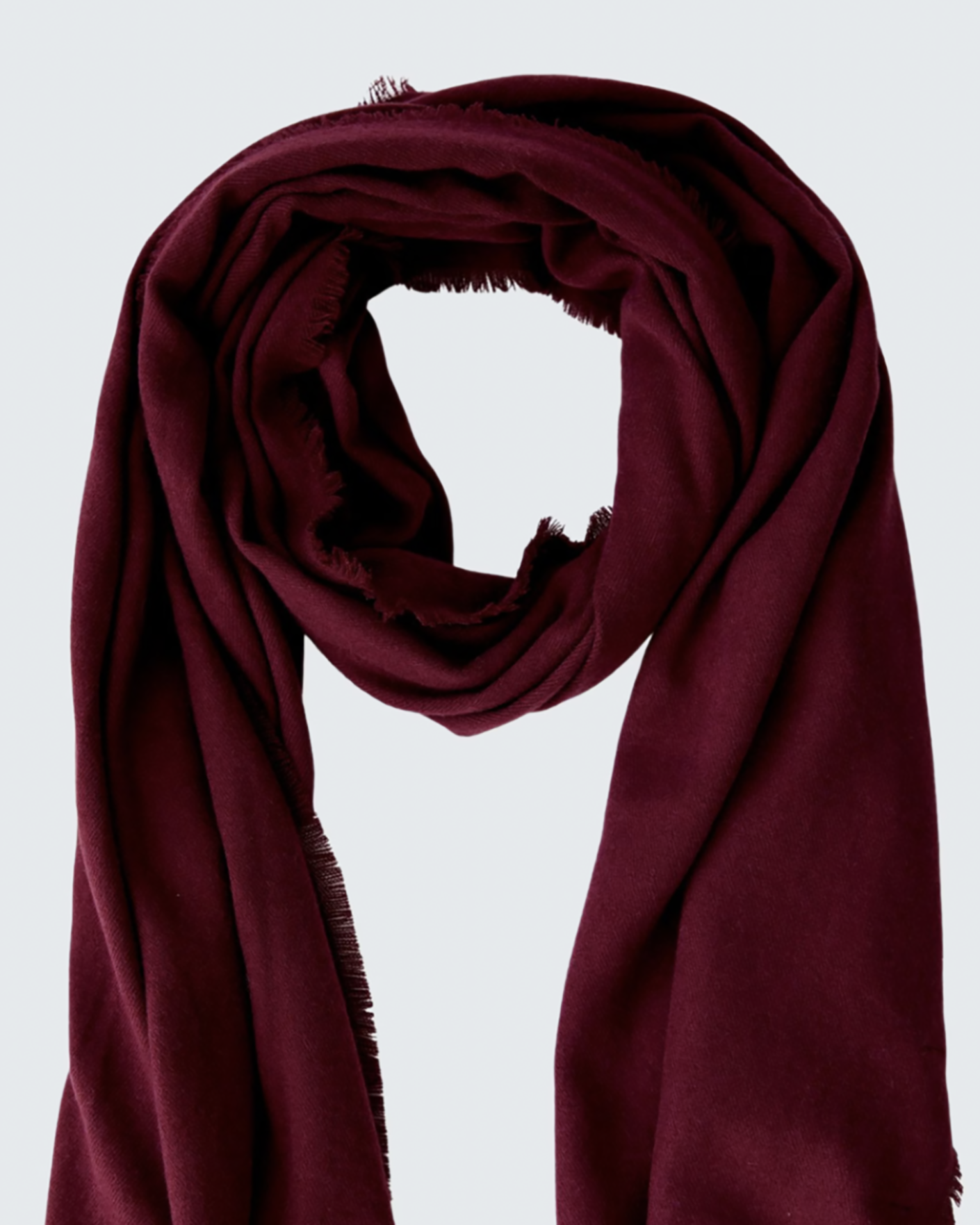 Палантин OUI вишневого цвета в строчный рисунок. Модель прямоугольной формы с небольшим декором бахромы по краю. Палантин - аксессуар на прохладную погоду.