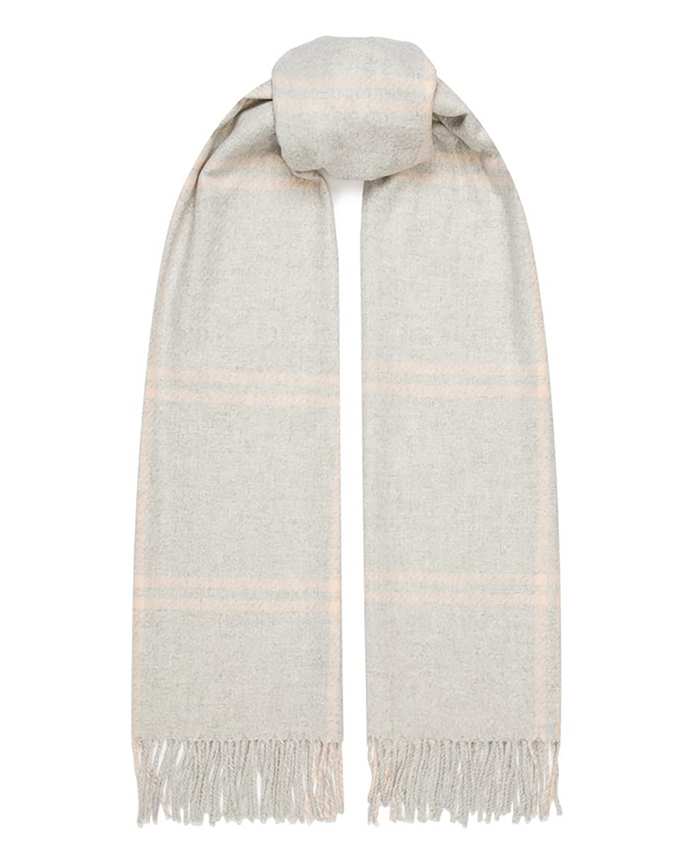 Палантин Labbra светло-серого цвета в крупную клетку. Модель выполнена из высококачественного сочетания хлопка и шерсти. По краю декор в виде бахромы. Палантин отлично дополнит ваш образ.