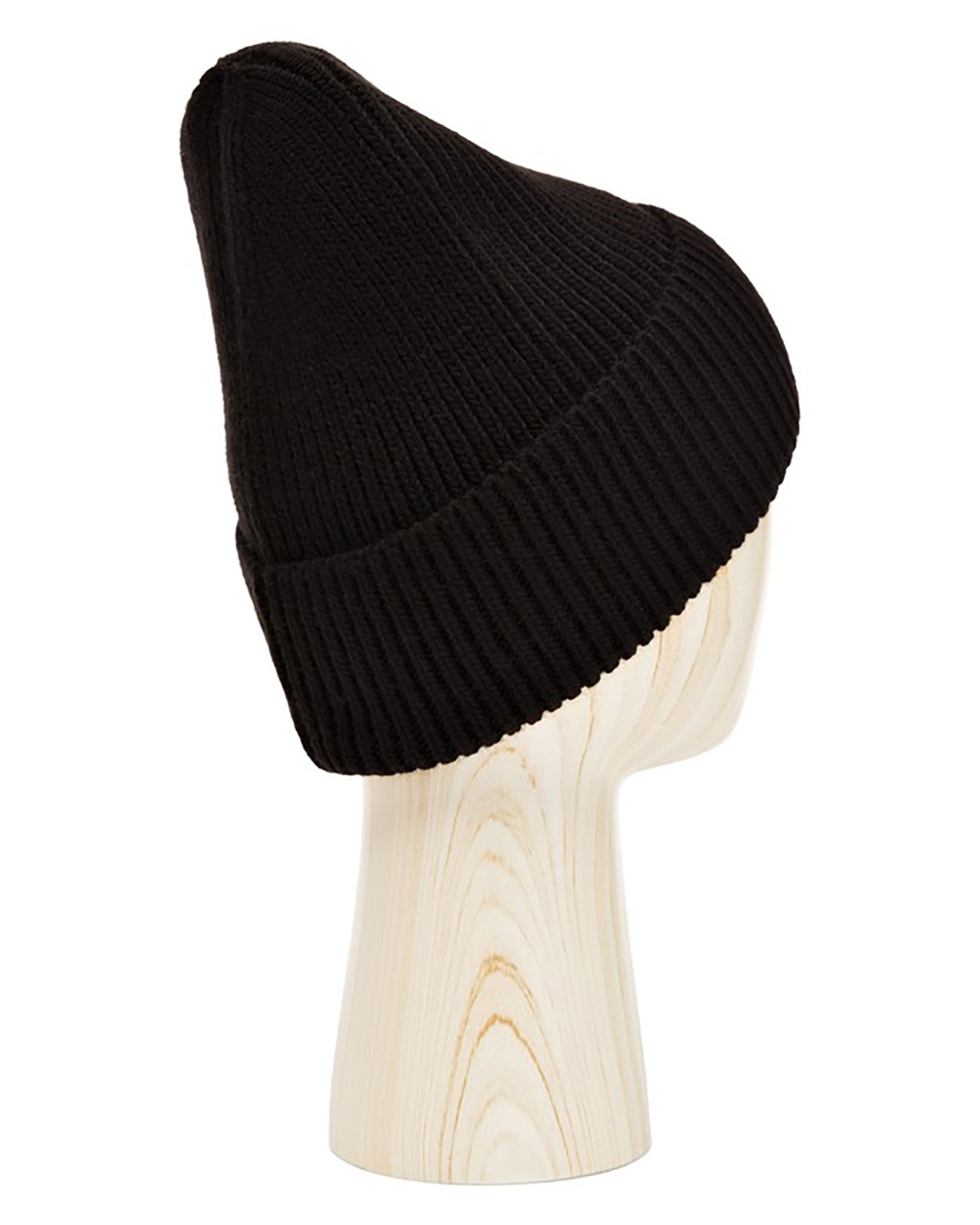 Современная шапка Labbra черного цвета в вертикальную вязку. Модель с увеличенным верхом и широким отворотом, украшенным нашивкой из текстиля. Шапка станет идеальным дополнением как образа в стиле casual, так и ярким аксессуаром для классического.
