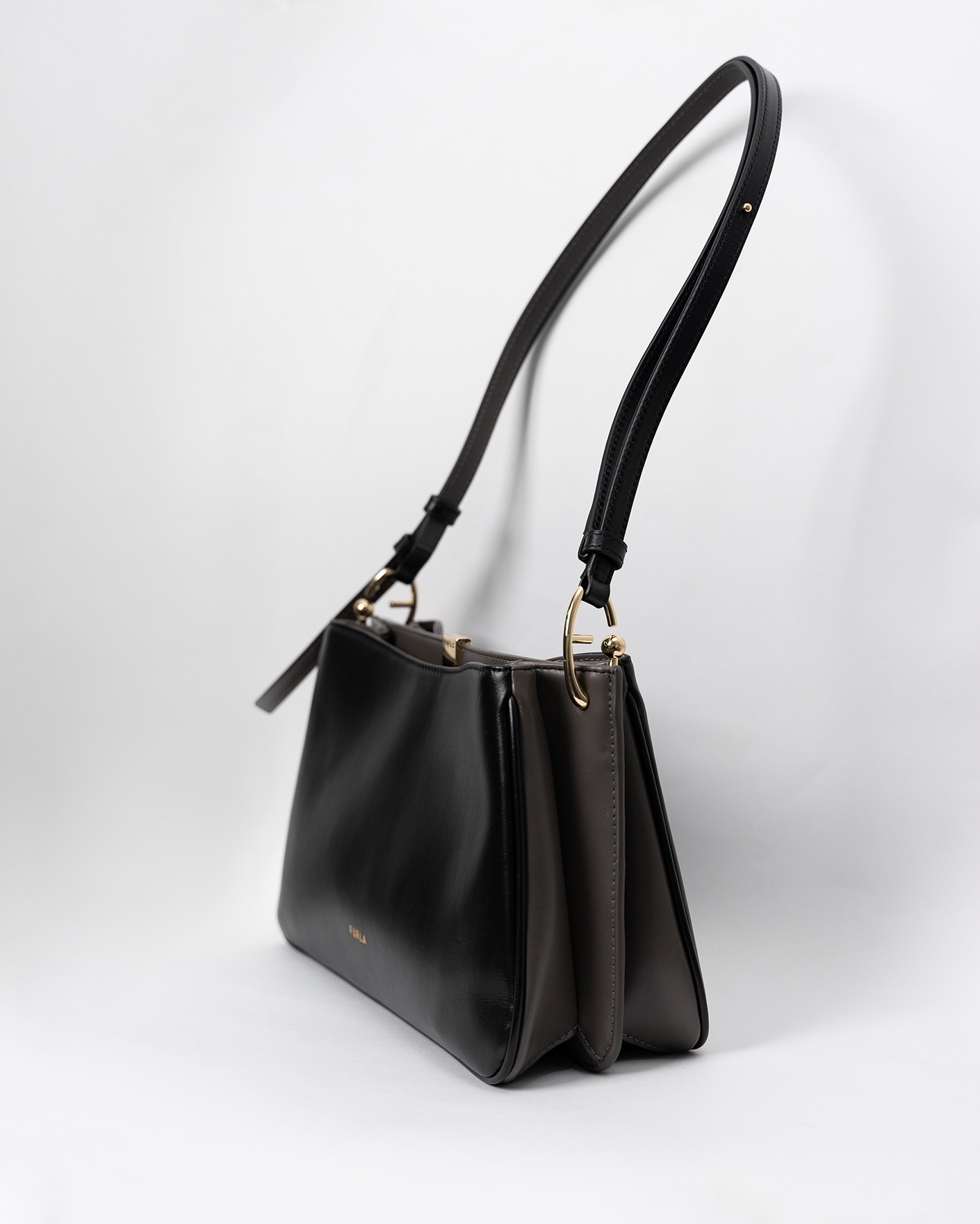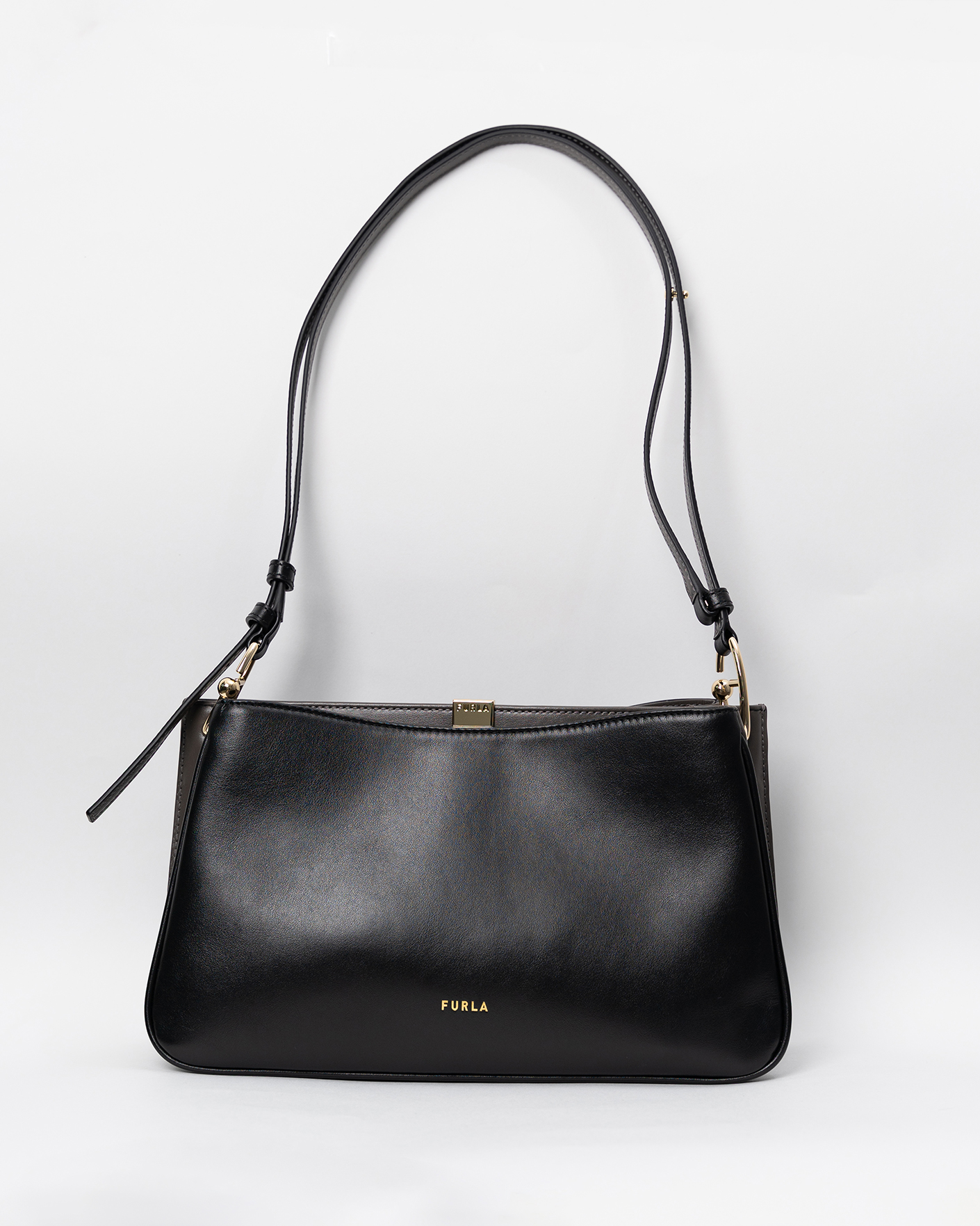 Сумка Furla Agatha черного цвета из 100% кожи. Модель прямоугольной формы, с регулируемой ручкой на плечо, размер этой сумки делает ее удобной для хранения ваших личных вещей. Аксессуар станет вашим идеальным спутником во время досуга и встреч с друзьями.