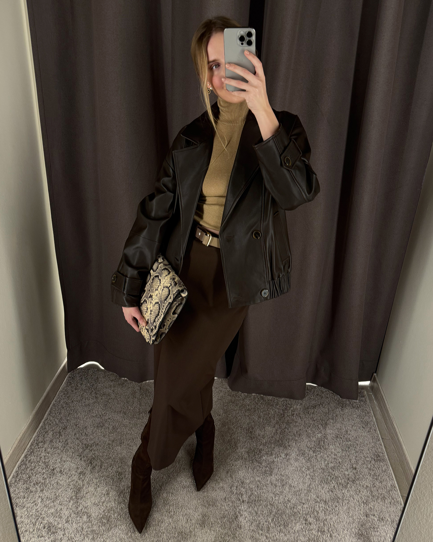 стильный образ на каждый день: куртка, жилет, юбка-карандаш