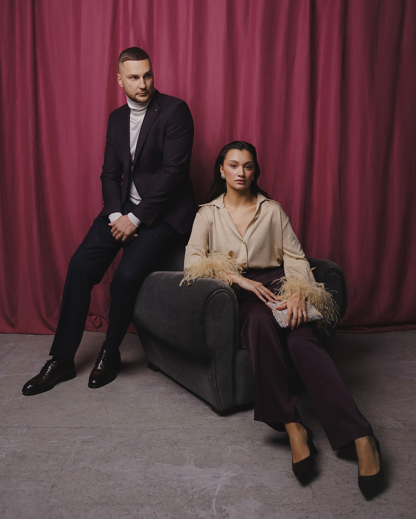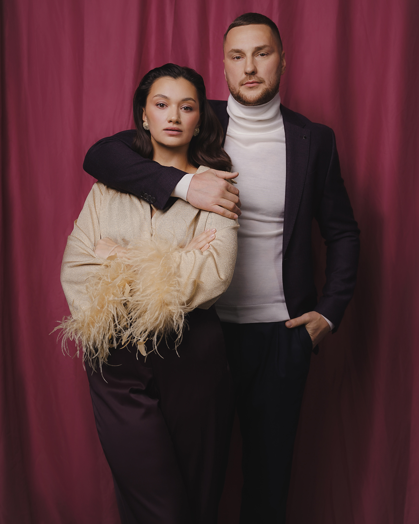 стильный образ на праздничный вечер: пиджак, водолазка, брюки