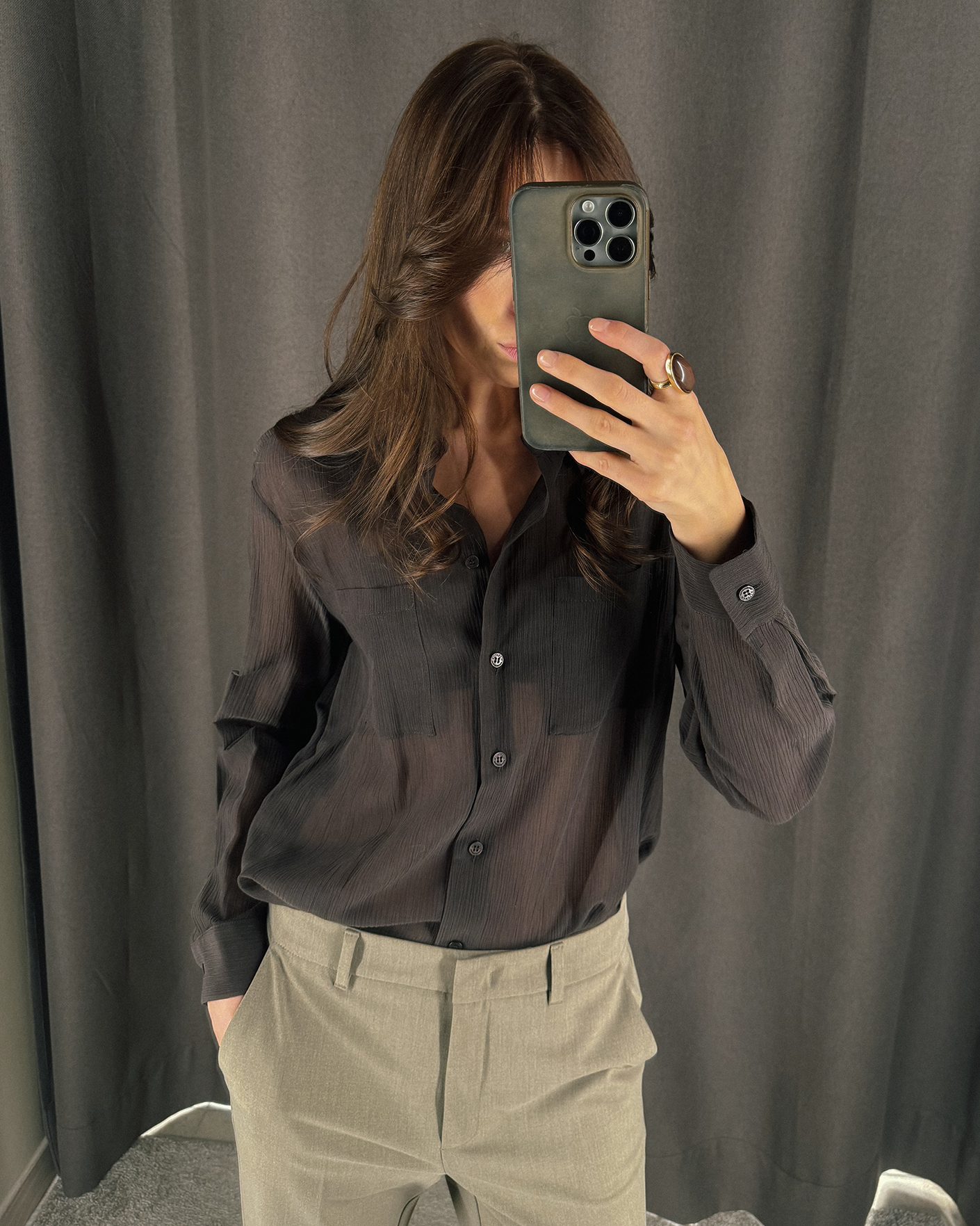 Блуза Marella темно-коричневого цвета с мятой текстурой. Модель выполнена из высококачественного сочетания хлопка и шелка. Отложной воротник, застежка на пуговицы, накладные нагрудные карманы. Блуза станет незаменимой вещью на каждый день.
