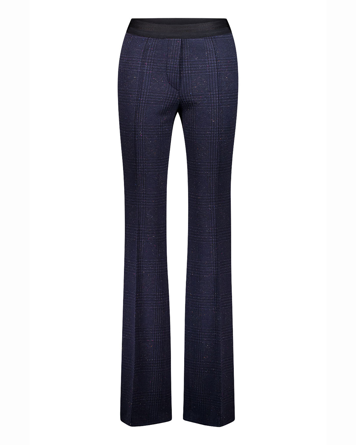 Брюки Gardeur фиолетово-синего цвета в строчный рисунок. Модель на эластичном поясе, имеются врезные карманы. Брюки можно сочетать с любым гардеробом.