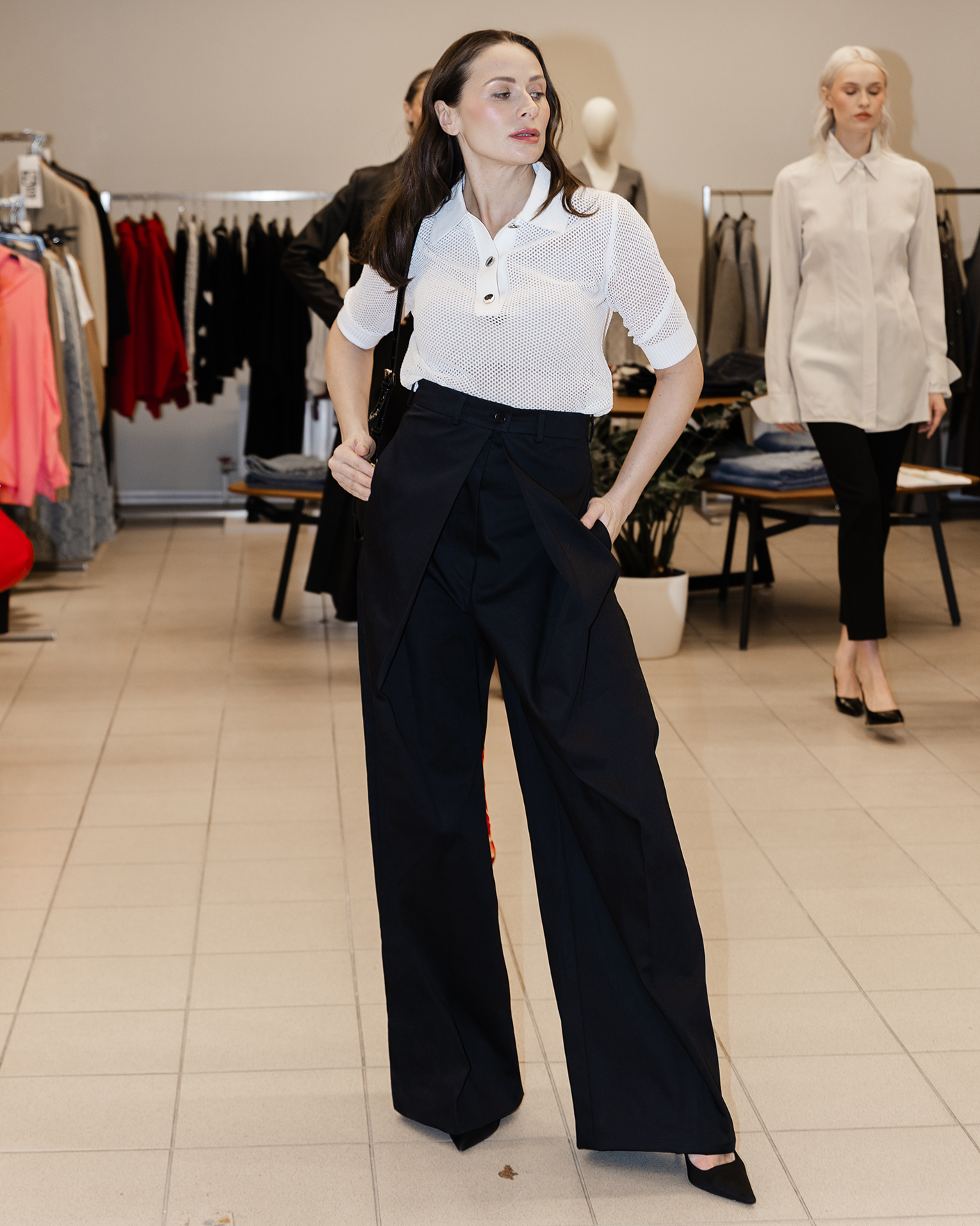 Брюки-палаццо Sportmax черного цвета. Хлопковая модель с завышенной талией на стандартной застежке и с эффектными складками. Имеются врезные карманы по бокам. Брюки-палаццо отлично впишутся в ваш гардероб.