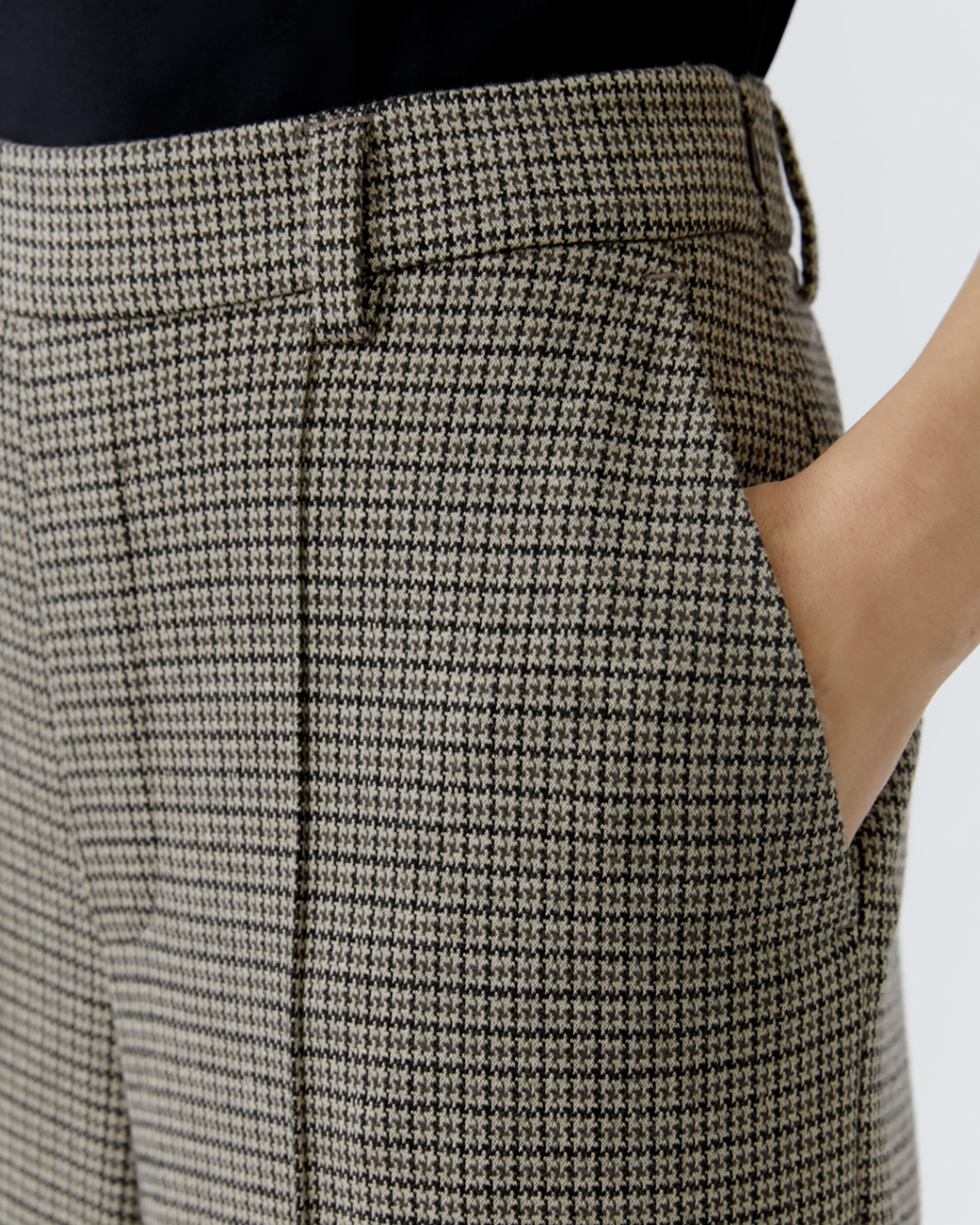Брюки OUI серо-бежевого цвета в мультиклетку. Модель на скрытой застежке, со стрелками, врезные карманы по бокам и сзади. Универсальные брюки отлично впишутся в ваш гардероб.