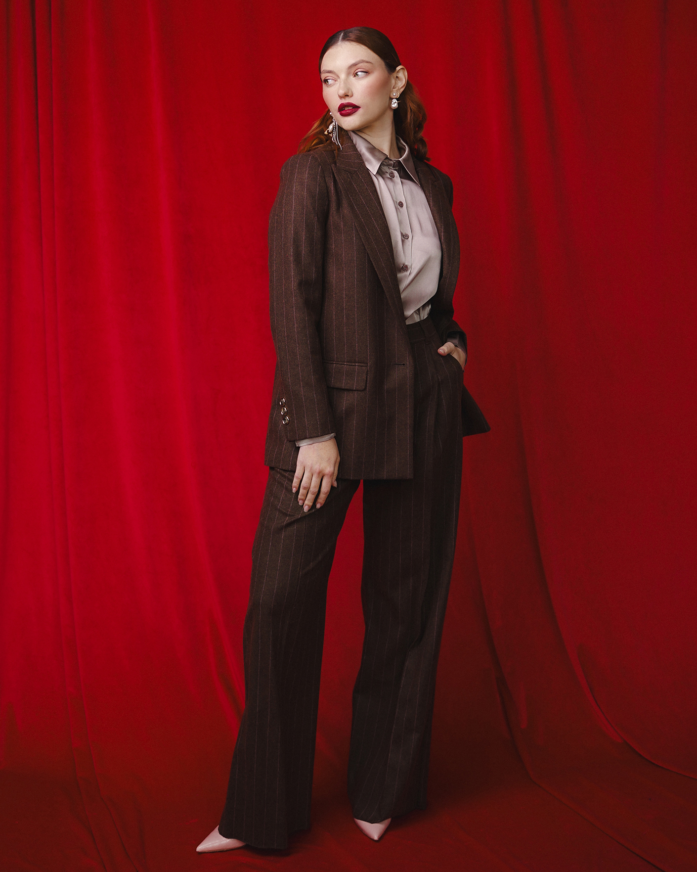 Брюки Marella розово-коричневого цвета в узкую вертикальную полосу. Модель прямого кроя, завышенная талия на защипах, скрытая застежка, врезные карманы по бокам. Брюки можно сочетать с топом, рубашкой, блузой, джемпером, кардиганом, жилетом и жакетом.