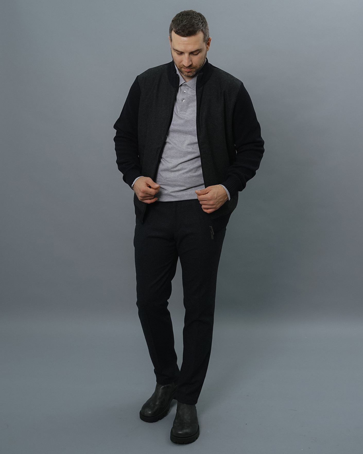 Универсальный повседневный образ: кардиган-бомбер, футболка-поло, брюки Добавлено в избранное Смотреть все
