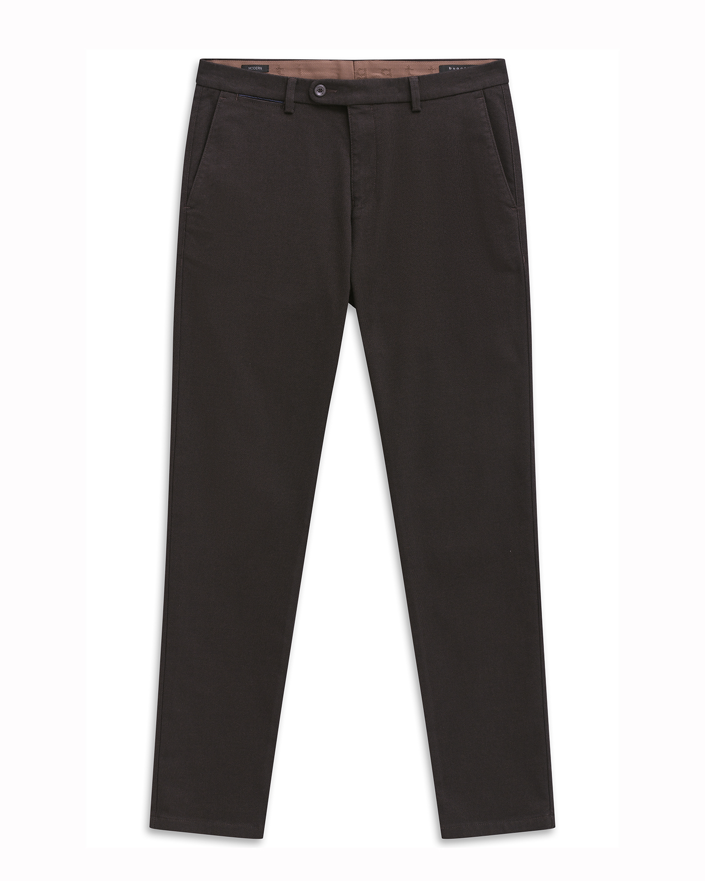 Брюки-чиносы Bugatti коричневого цвета в мелкий рисунок. Модель на стандартной застежке, врезные карманы по бокам и сзади на пуговице. Чиносы отлично впишутся в ваш гардероб.