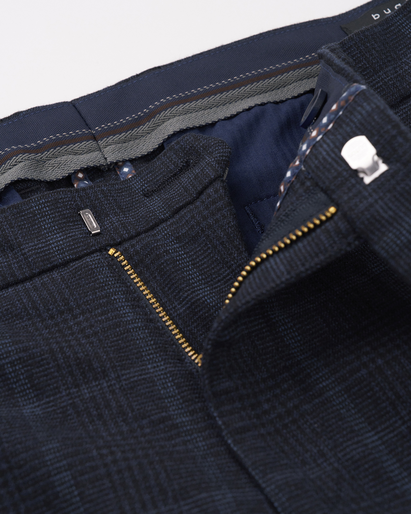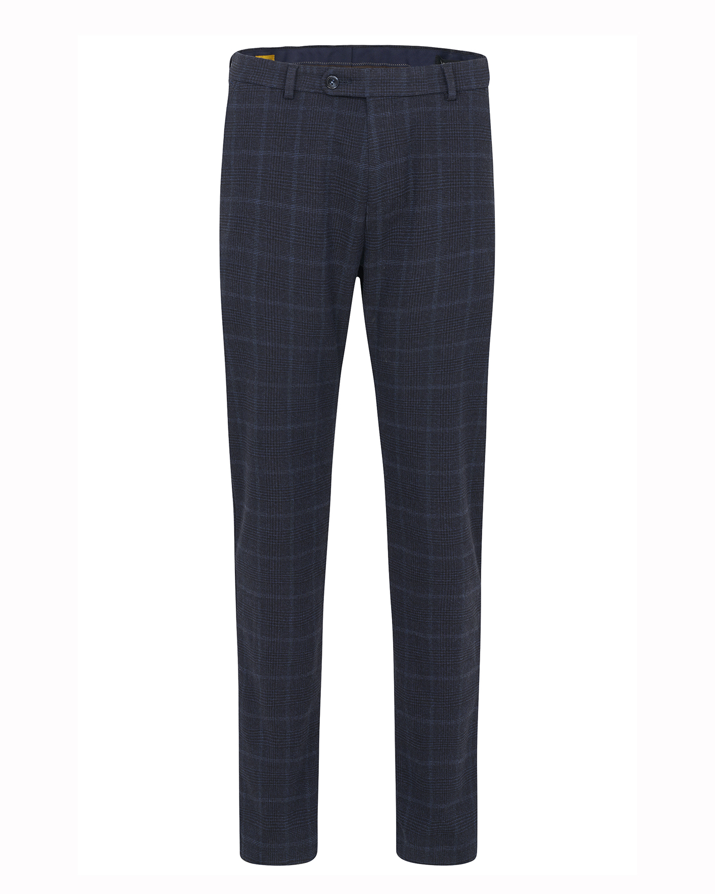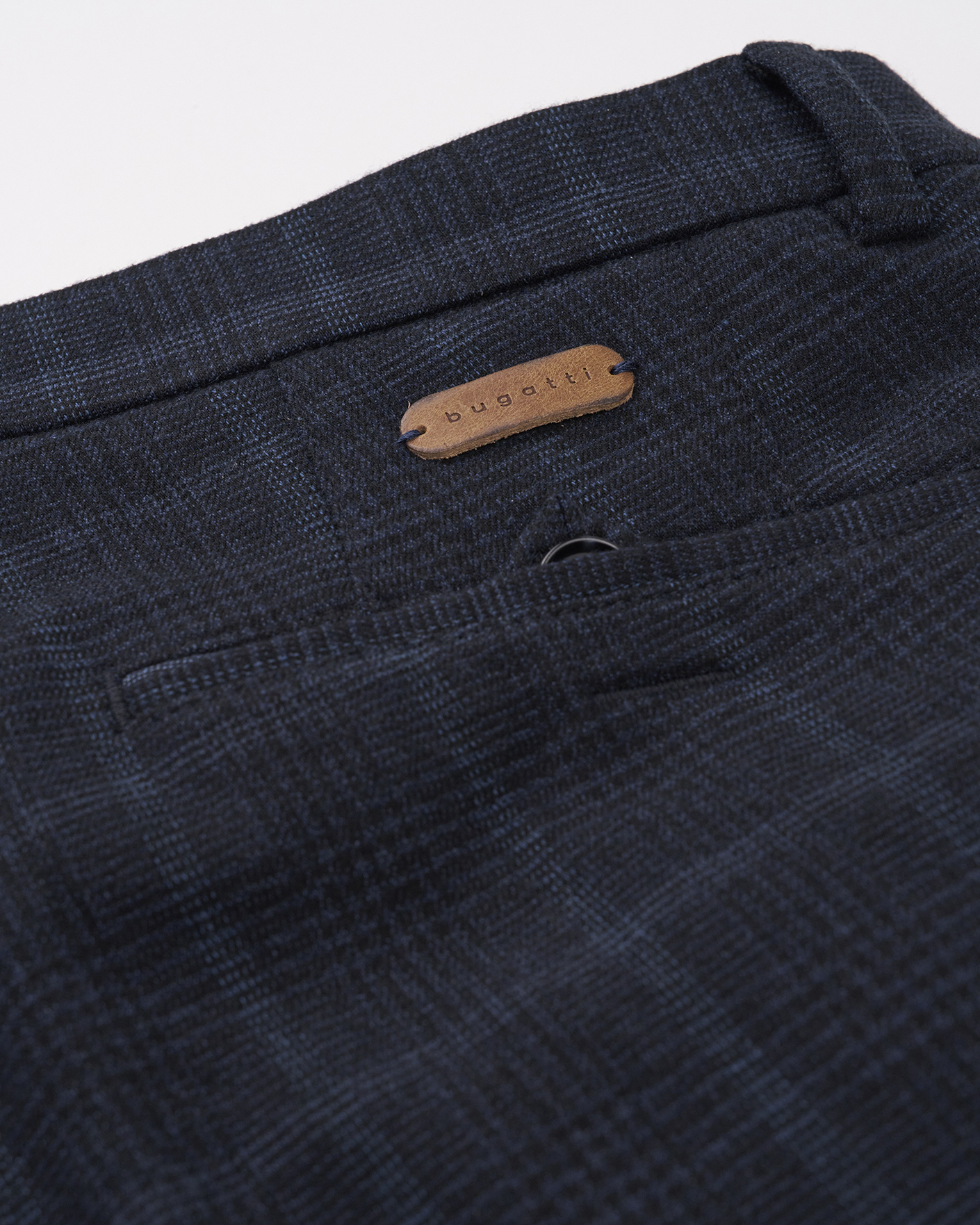 Стильные брюки-чиносы Bugatti синего цвета в крупную клетку. Модель на стандартной застежке, имеются врезные карманы по бокам и сзади на пуговице. Брюки-чиносы можно сочетать с рубашкой, джемпером, кардиганом, свитером и пиджаком.