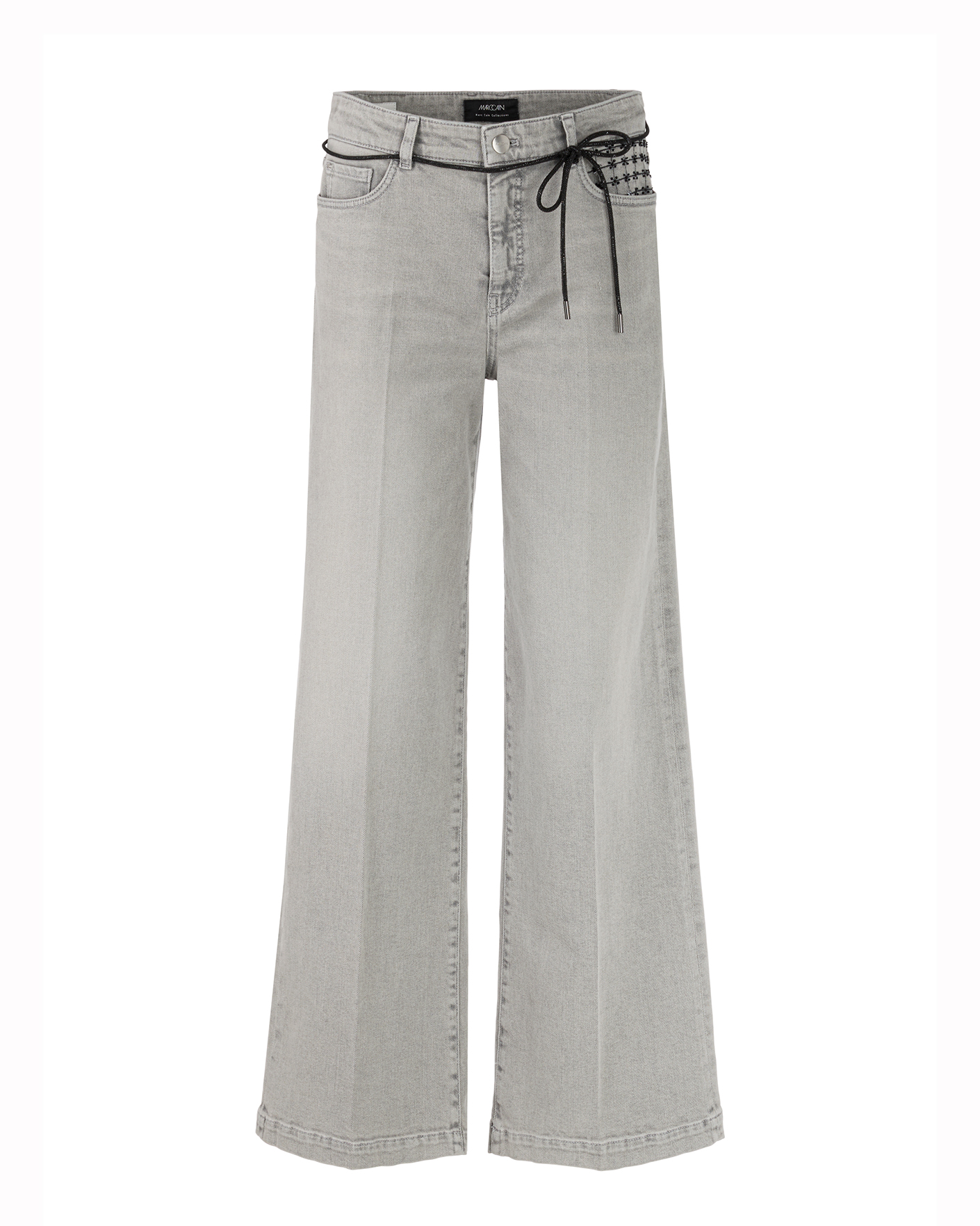 Джинсы-трубы Marc Cain серо-бежевого цвета. Модель на стандартной застежке, имеется вставной шнурок, боковые карманы с декором, а также накладные сзади. Джинсы-трубы отлично впишутся в ваш гардероб.