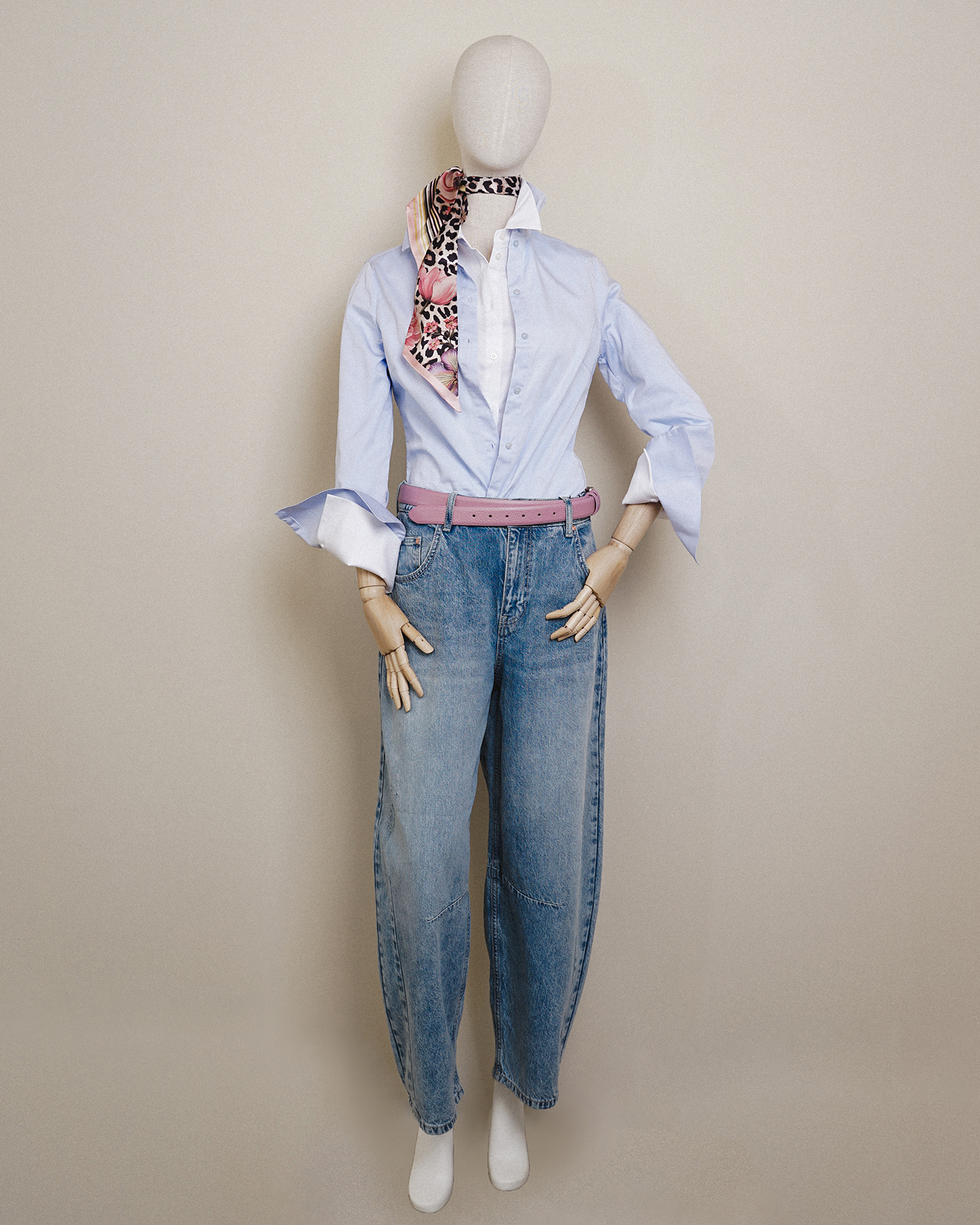 Широкие джинсы OUI голубого цвета. Хлопковая модель на стандартной застежке, карманы по бокам и накладные сзади. Джинсы - база на каждый день.