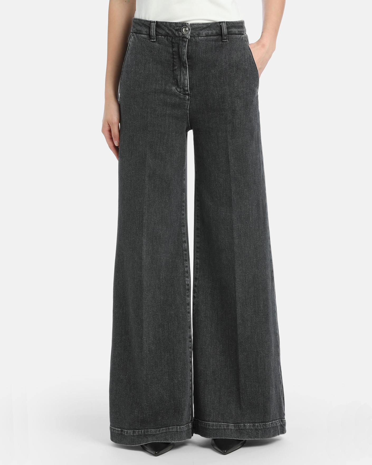 Джинсы Luisa Spagnoli серого цвета. Хлопковая модель на стандартной застежке, карманы по бокам и сзади. Джинсы - база повседневного гардероба.