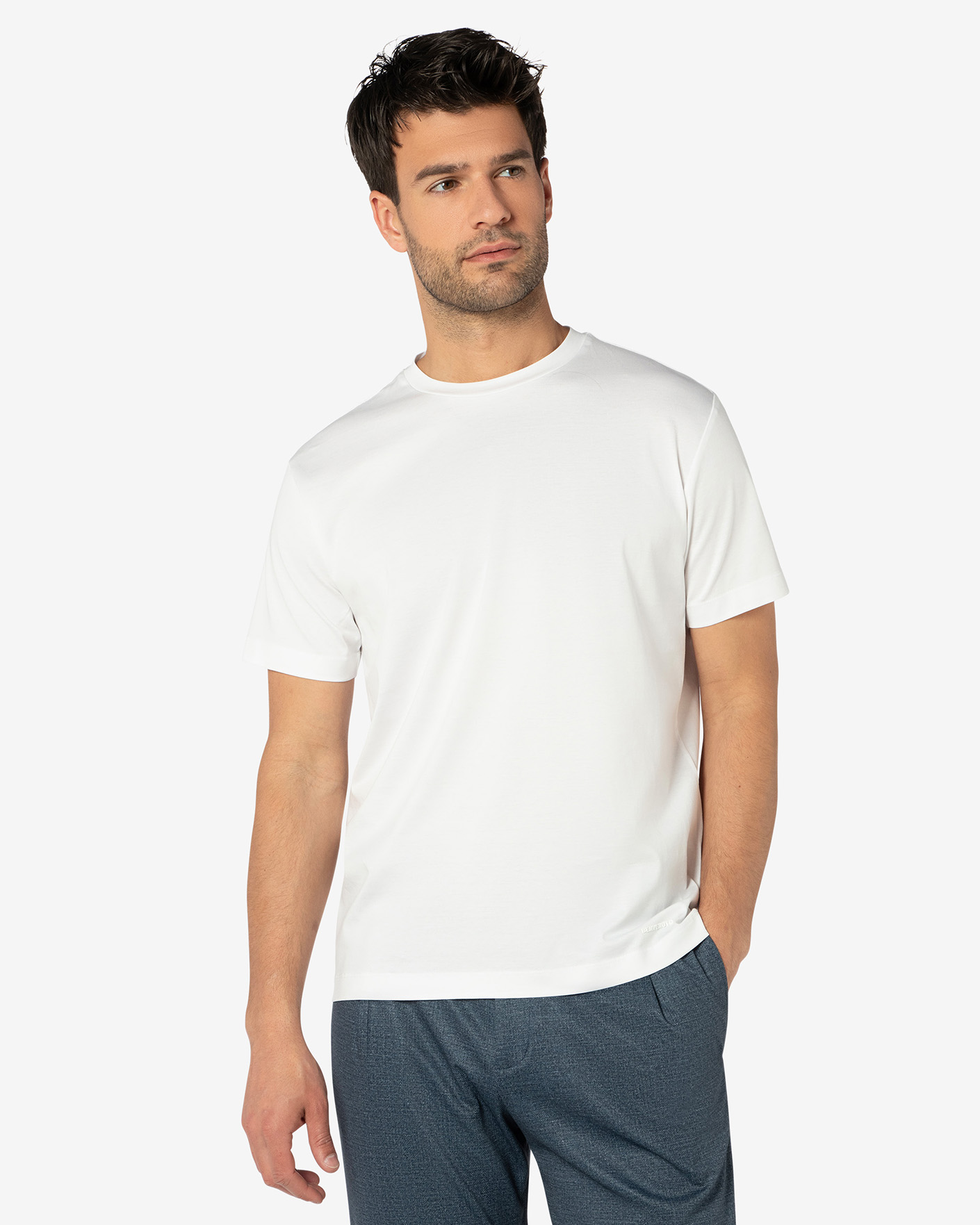 Базовая футболка Benvenuto белого цвета. Модель из 100% хлопка, прямого кроя, короткие рукава. Футболка отлично впишется в ваш гардероб.