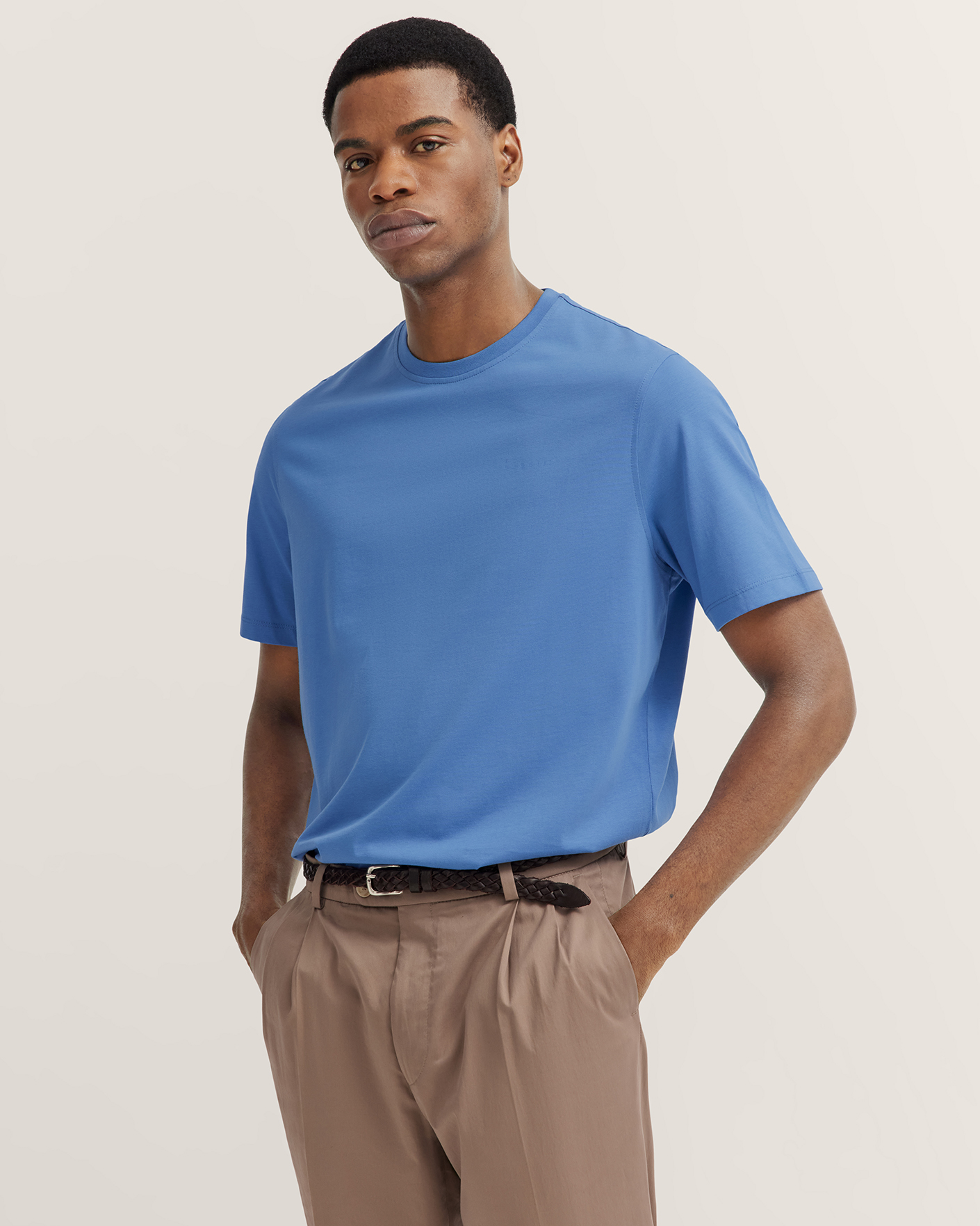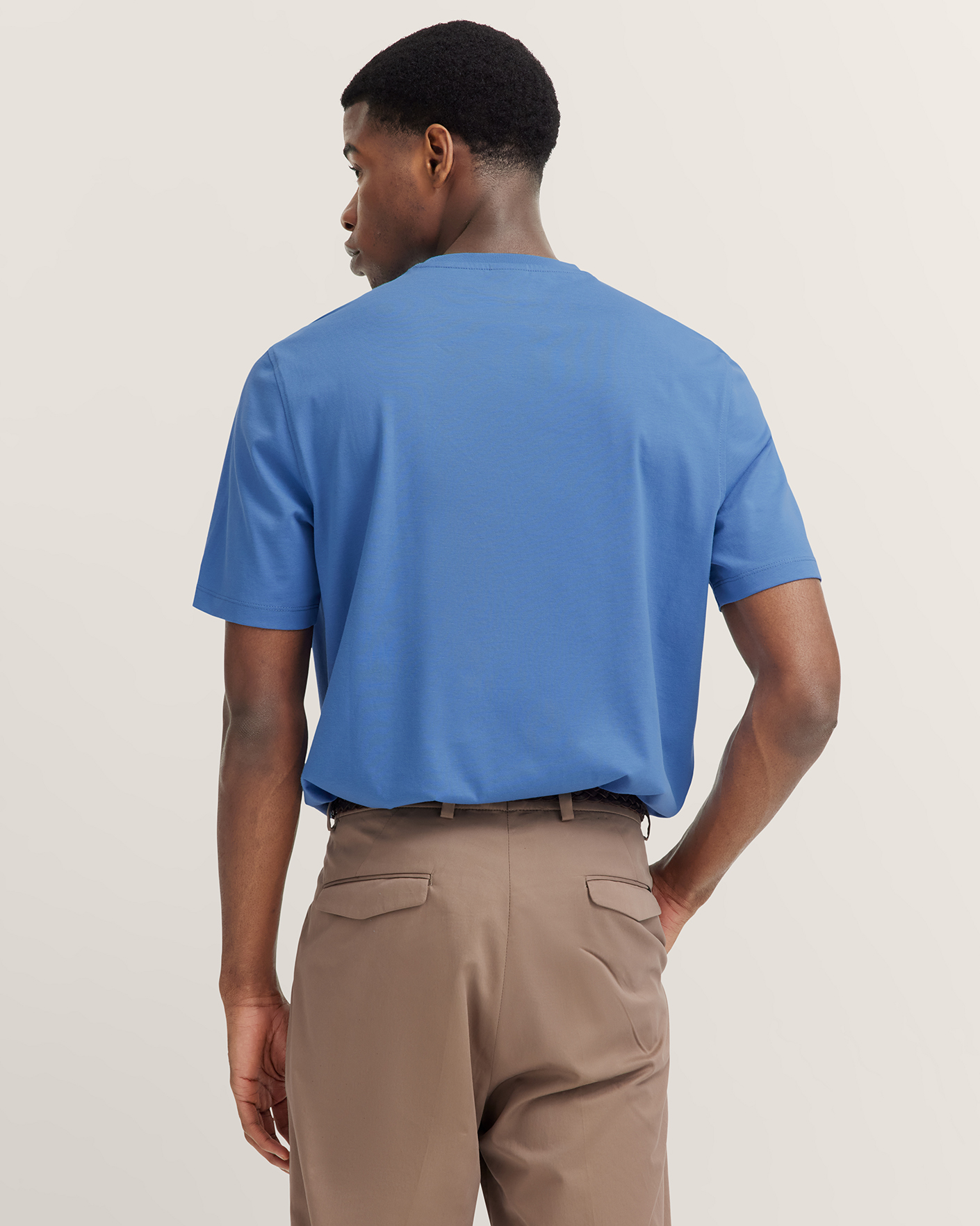 Футболка Bugatti темно-голубого цвета с нагрудным логотипом в тон. Модель из 100% хлопка, прямой крой, круглый вырез, короткий рукав. Футболка - универсальная вещь на каждый день.