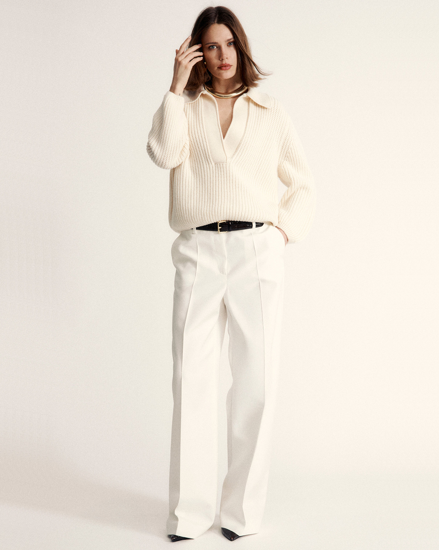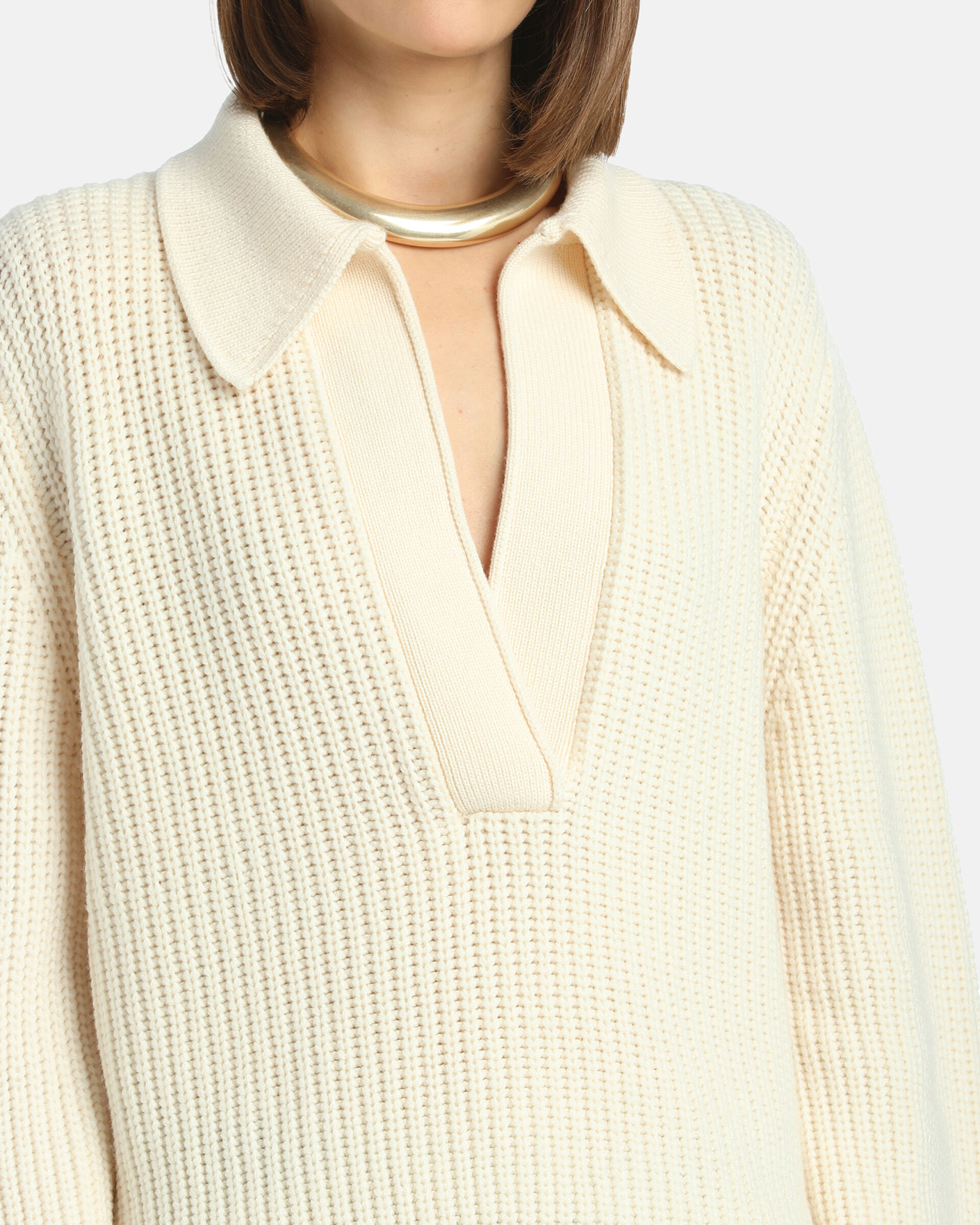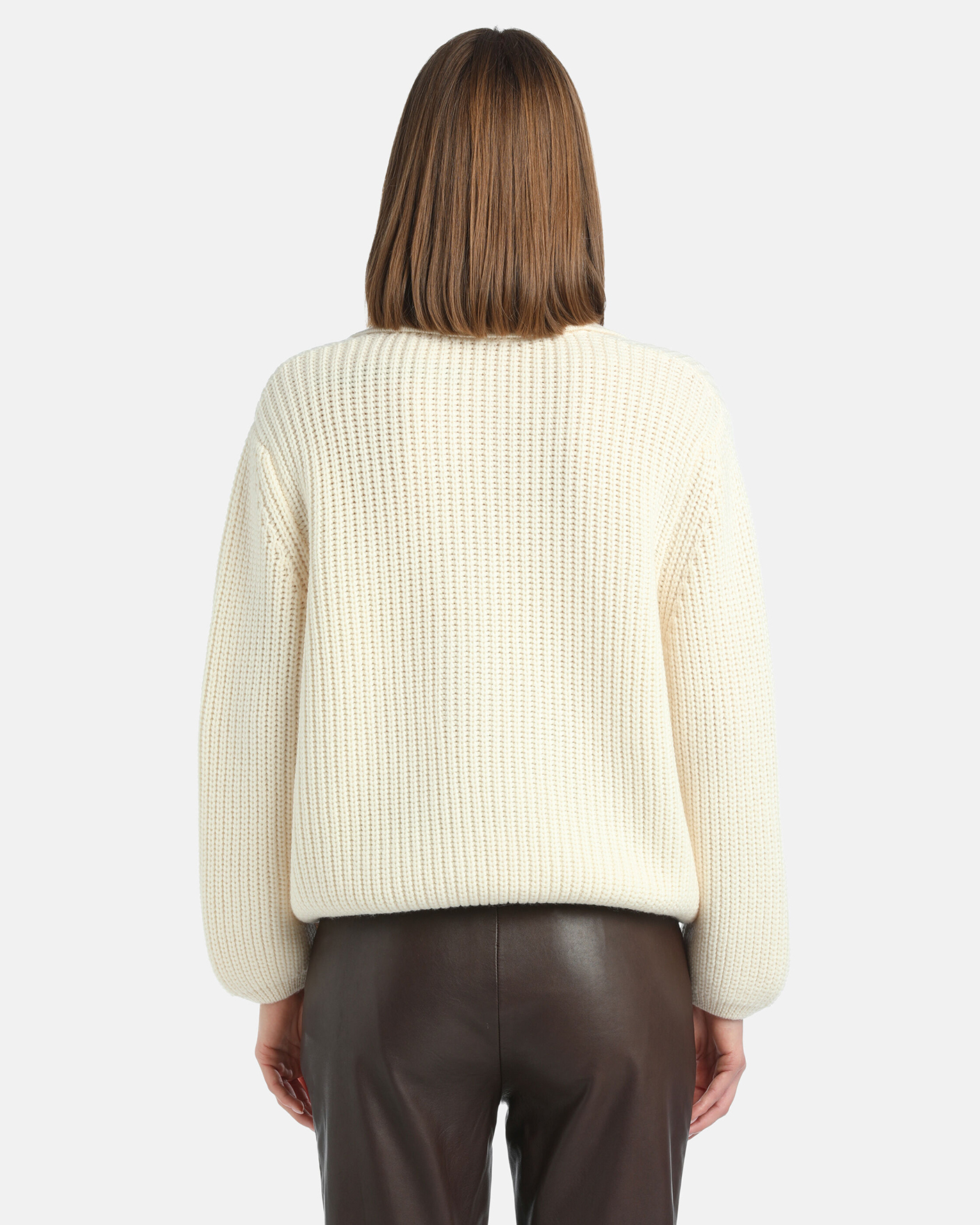 Свободный джемпер Luisa Spagnoli молочного цвета в крупную вязку. Модель из 100% шерсти, отложной воротник с V-образным вырезом. Джемпер станет фаворитом вашего гардероба.