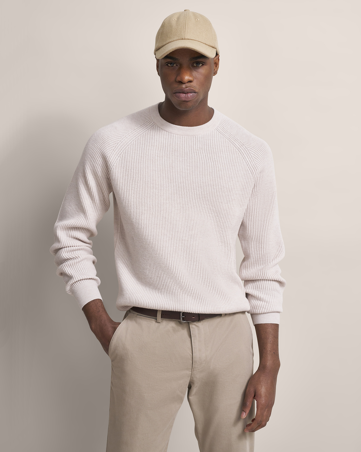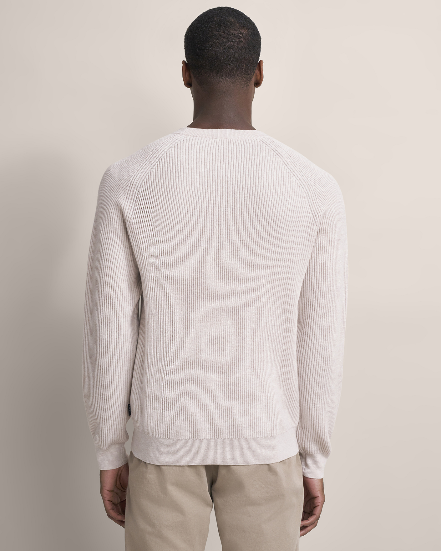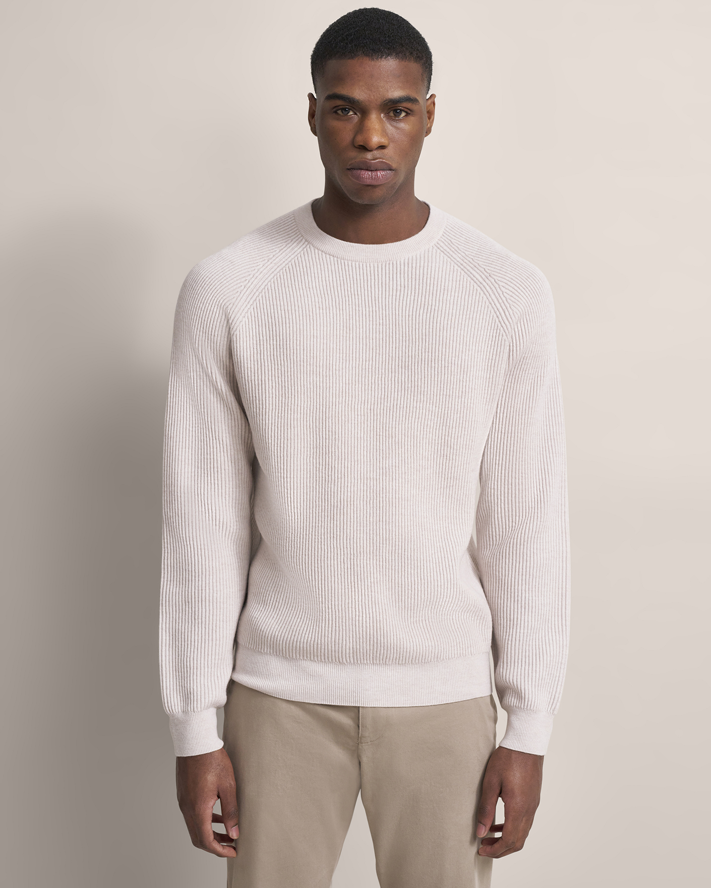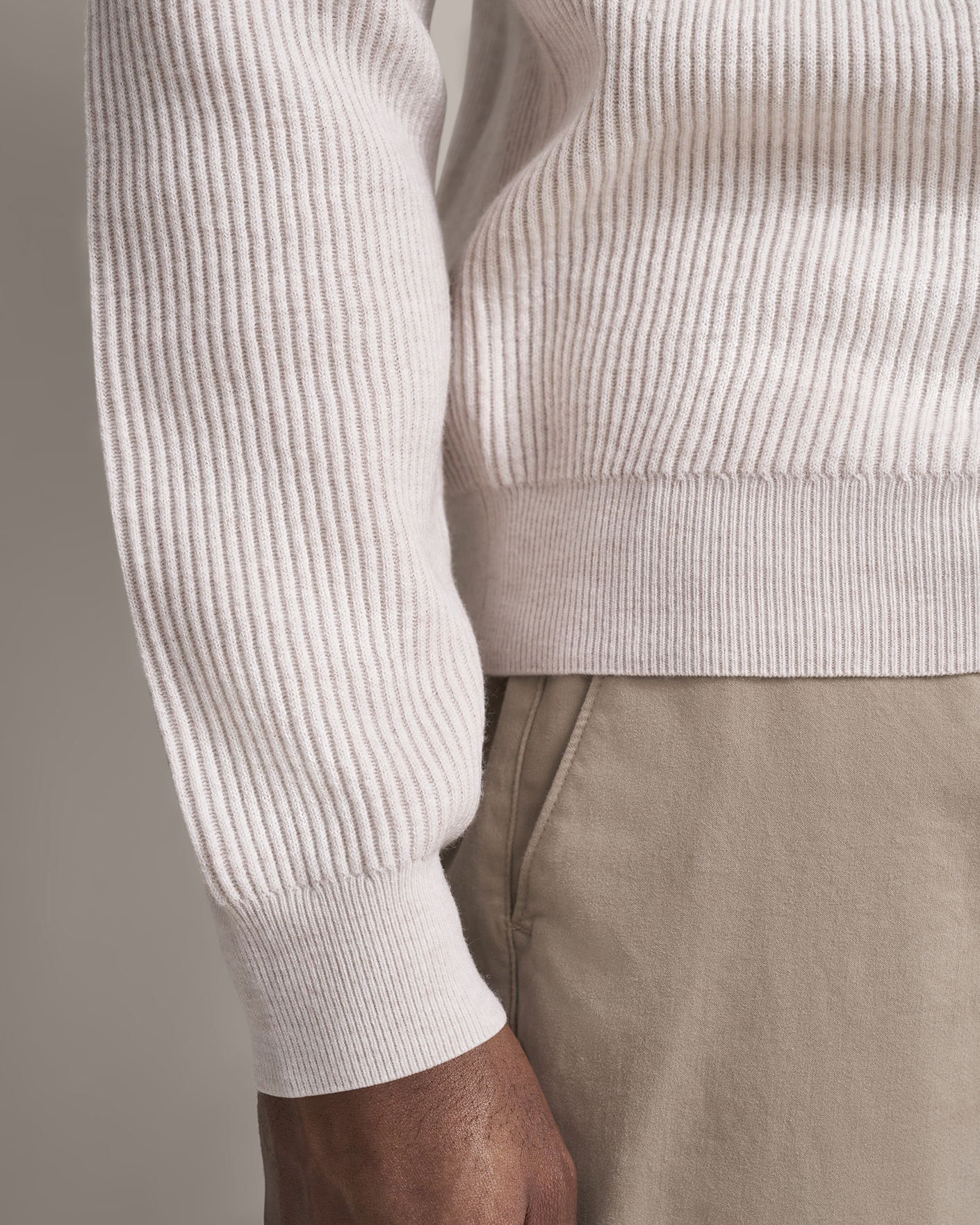 Джемпер Bugatti молочного цвета в узкую вязку-резинка. Шерстяная модель с круглым вырезом и длинными рукавами. Джемпер отлично впишется в ваш гардероб.