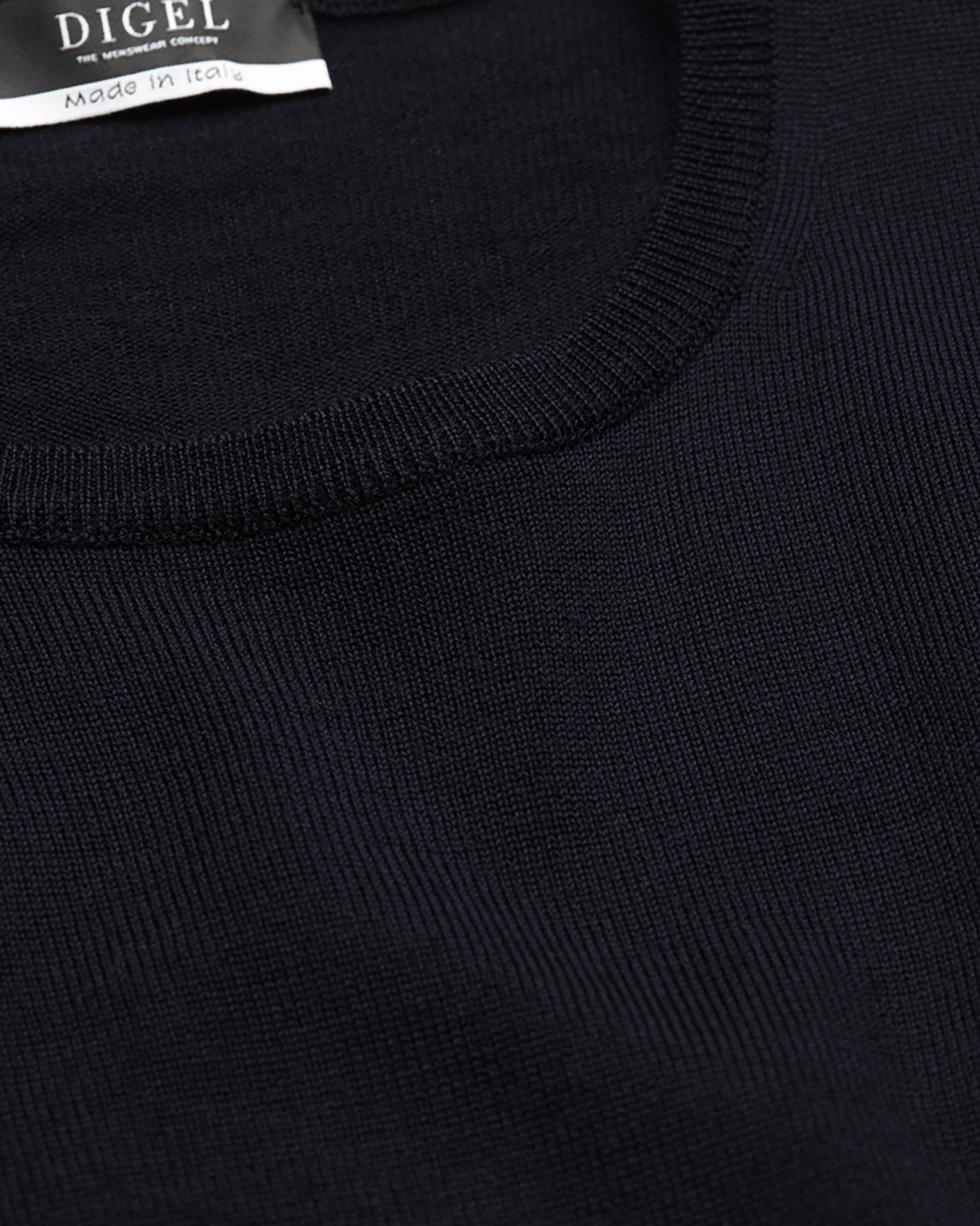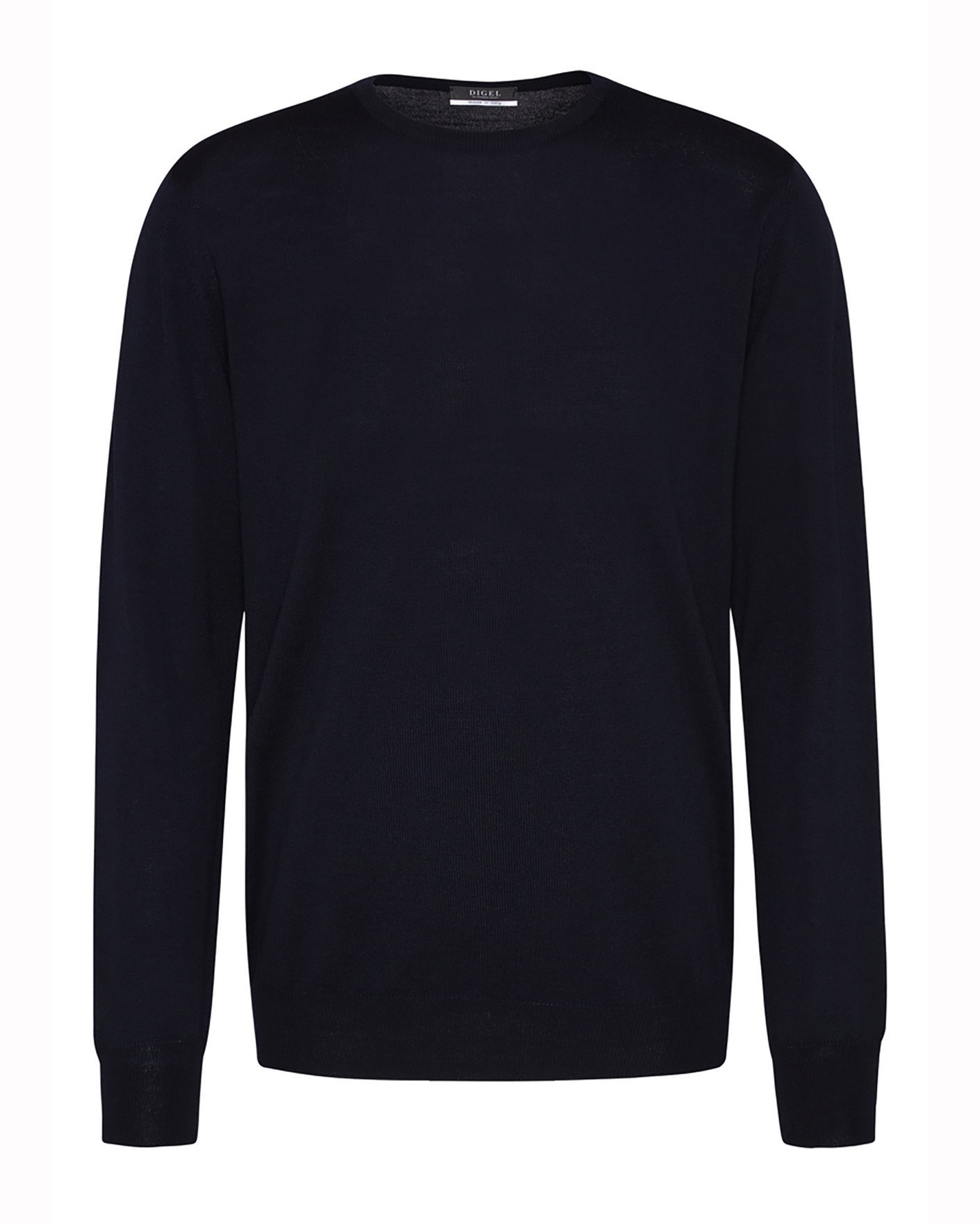 Джемпер Digel темно-синего цвета в строчный рисунок. Модель из 100% шерсти, круглый вырез, длинные рукава. Джемпер отлично впишется в ваш гардероб.