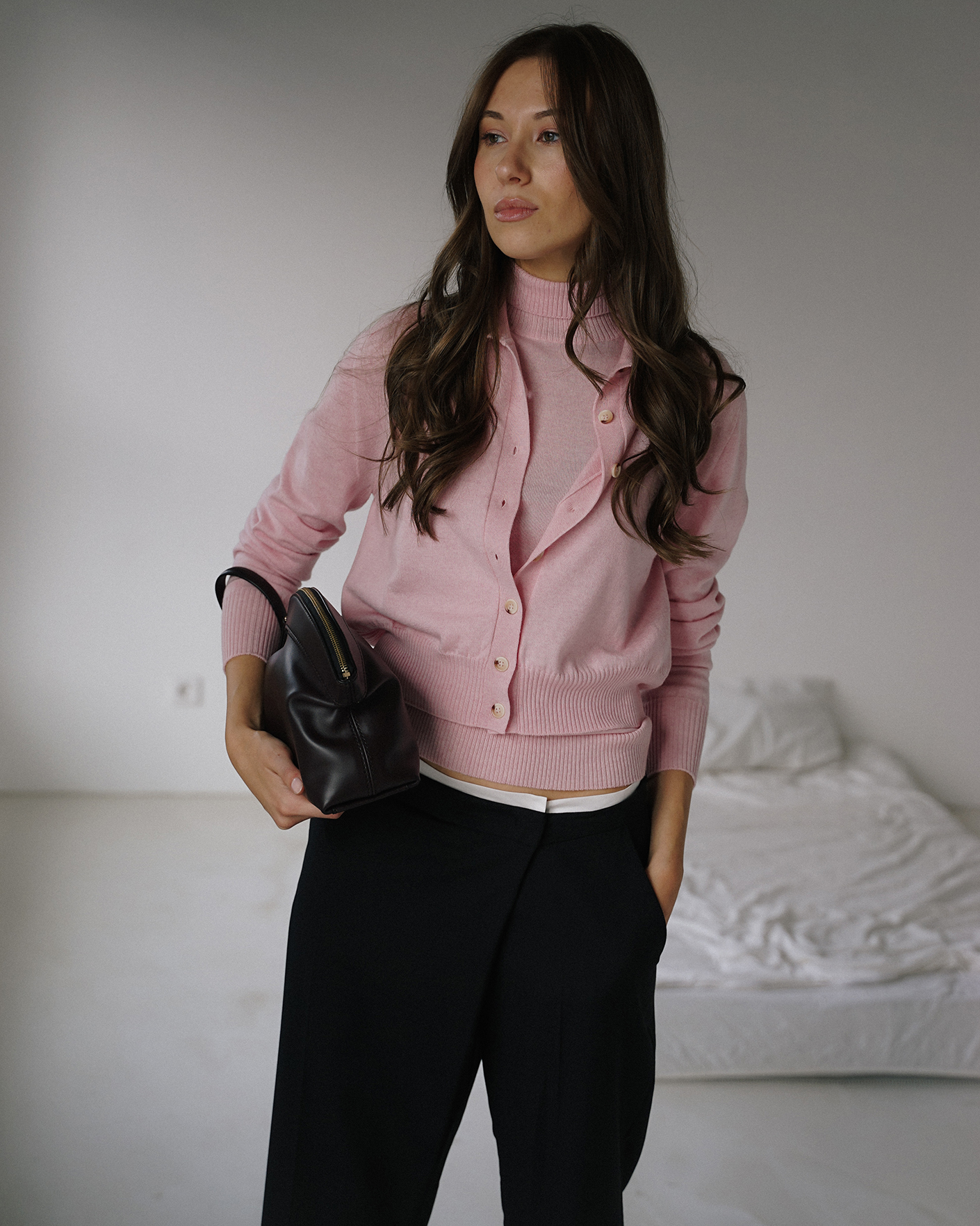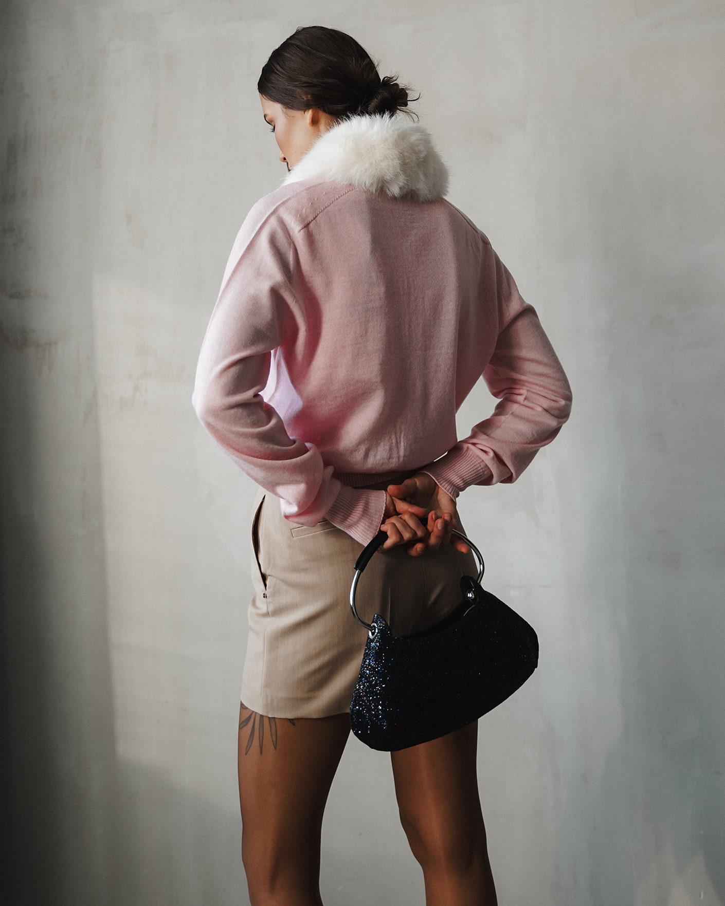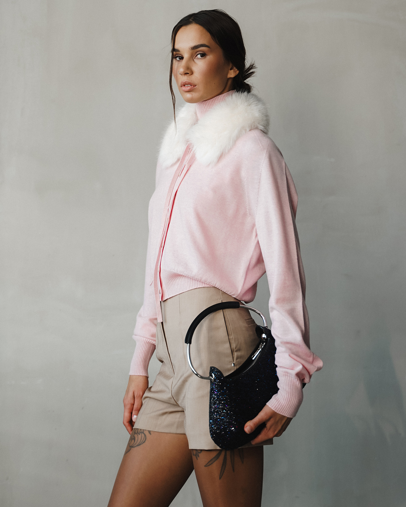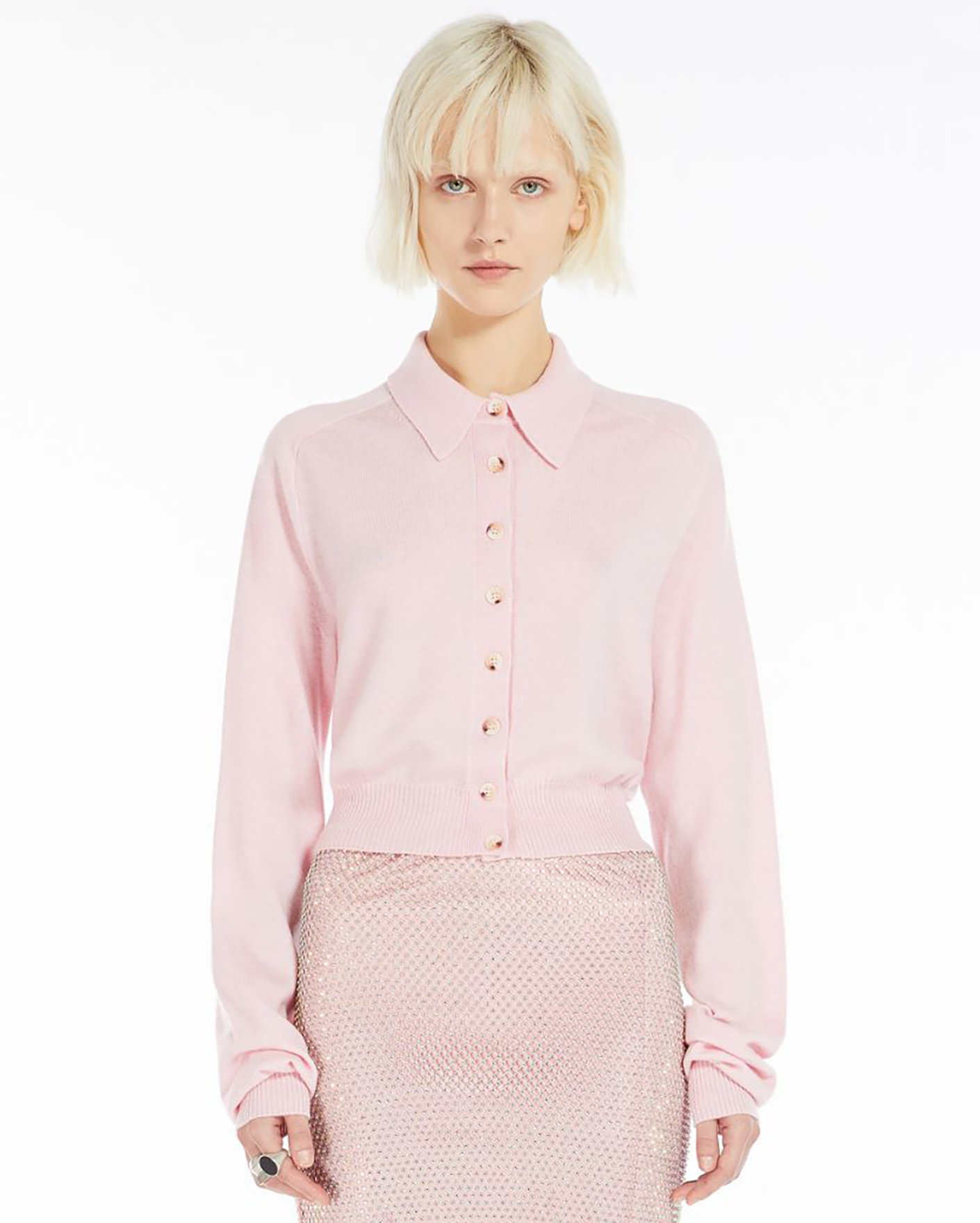 Кардиган Sportmax розового цвета в строчный рисунок. Модель из 100% шерсти, отложной воротник, застежка на пуговицы, манжеты и низ на тонкой ребристой резинке. Изюминка изделия - съемный меховой воротничок. Стильный кардиган станет любимым выбором к повседневному образу.