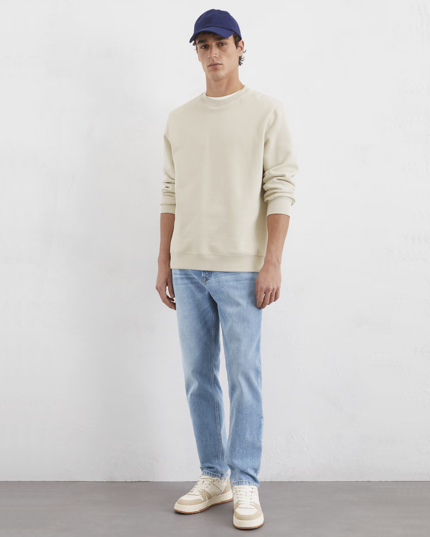 Толстовка Marc O'Polo светло-бежевого цвета в строчный рисунок и вышивкой логотипа на спинке. Модель из 100% хлопка, круглый вырез, манжеты и низ на резинке. Толстовка отлично впишется в повседневный гардероб.