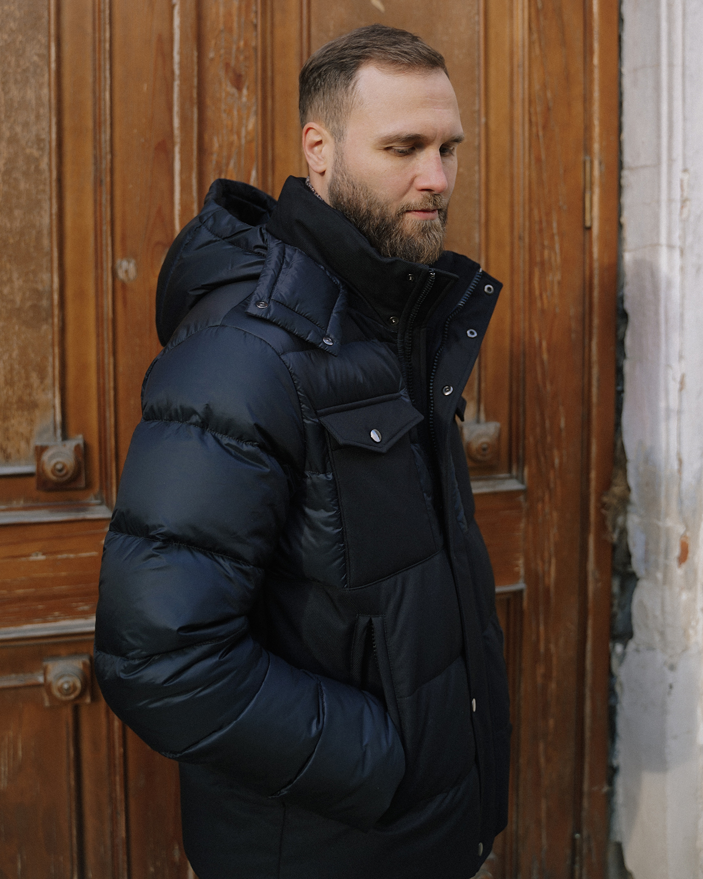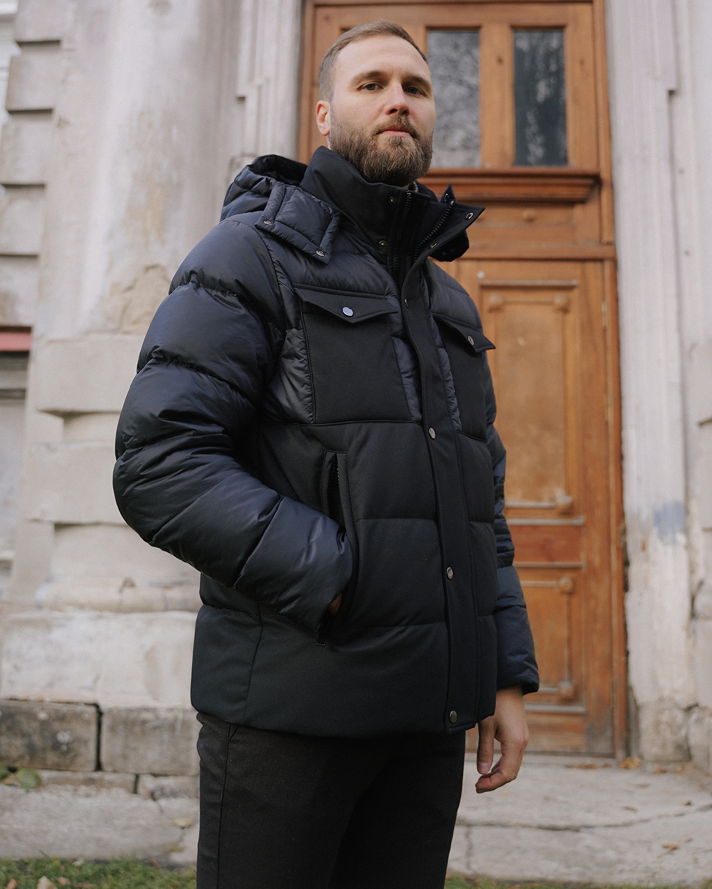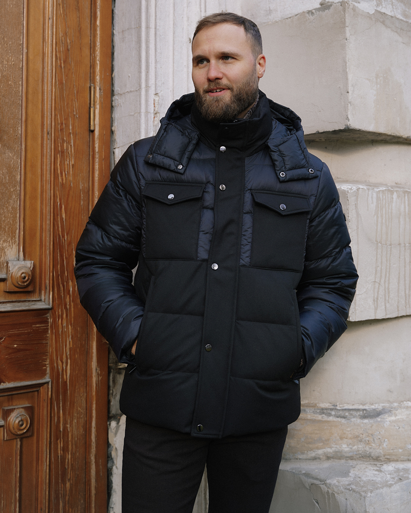 Теплая куртка Baureli черного цвета из комбинированных текстур. Модель с воротником-стойка, съемный капюшон, застежка на скрытую молнию и планку на кнопки, имеются накладные нагрудные карманы с клапанами, а также врезные по бокам на молнии. Куртка станет незаменимым спутником в холодную погоду.