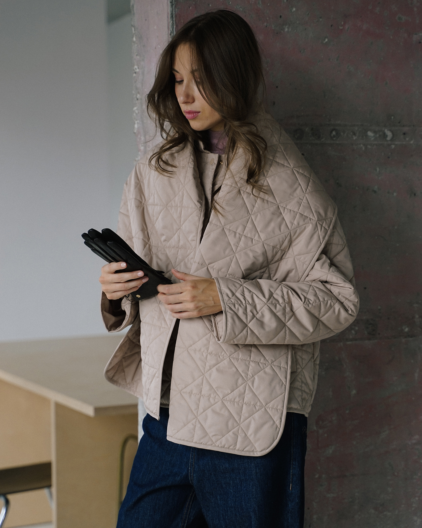 Утепленная куртка-шарф Riani бежевого цвета в геометрическую стежку. Модель с большим мягким воротником-шалью, застежка на скрытые кнопки, и с врезными карманами по бокам. Куртка-шарф - универсальная вещь, которая сочетается как с джинсами, так и с платьями и расставляет модные акценты.