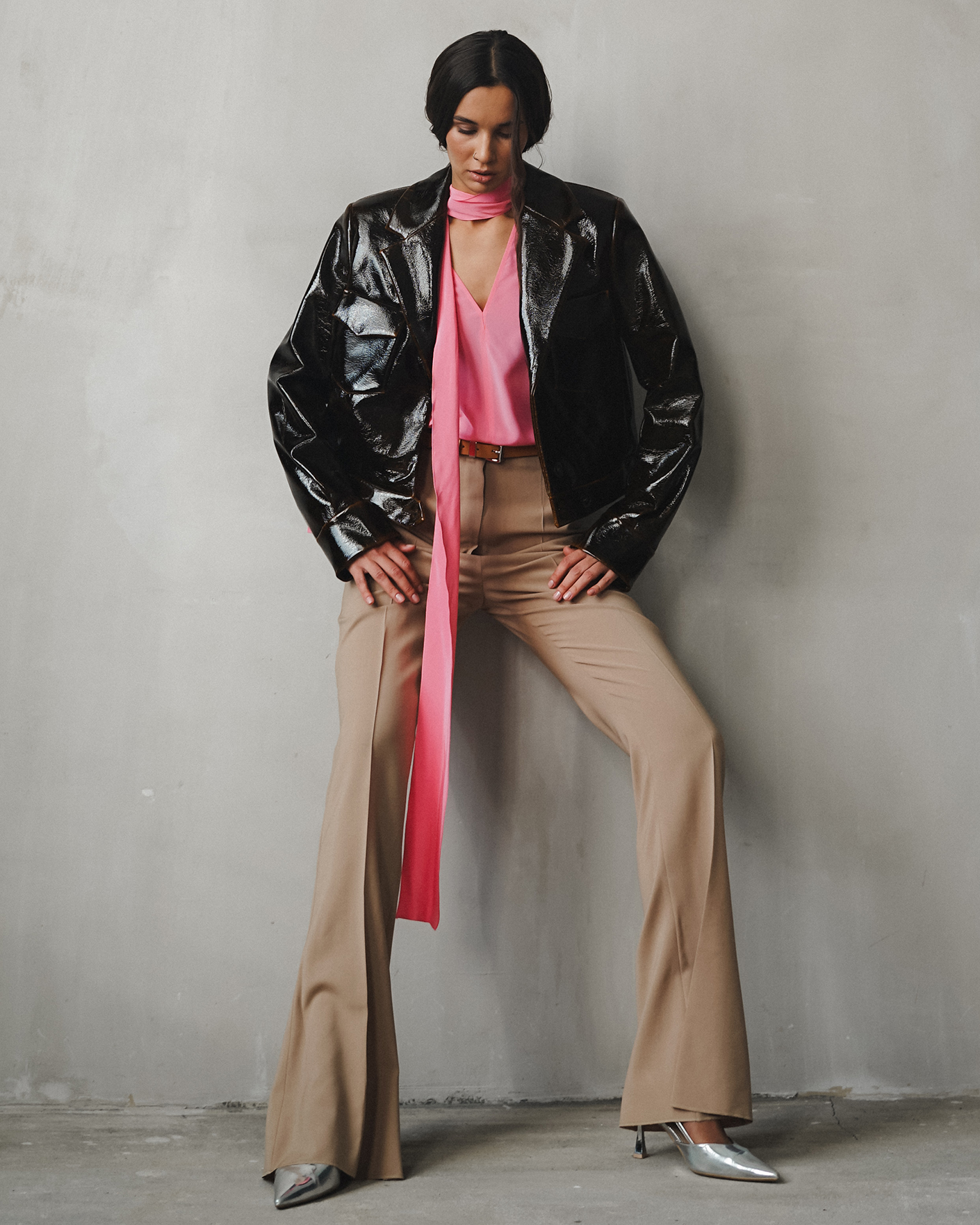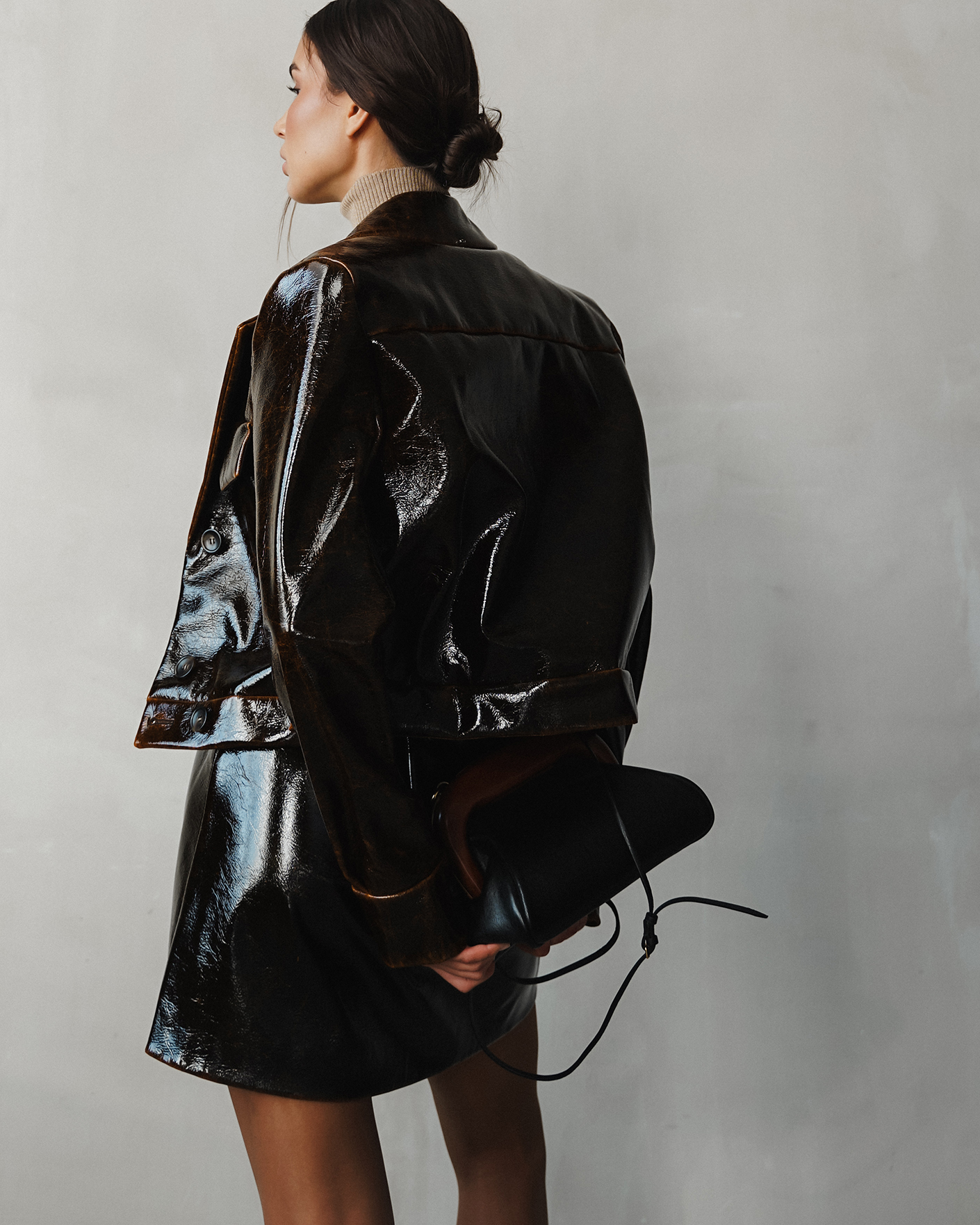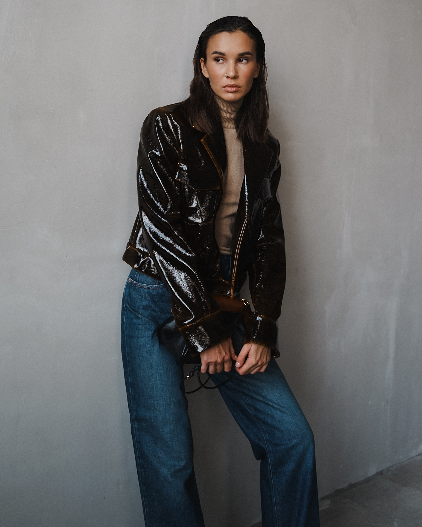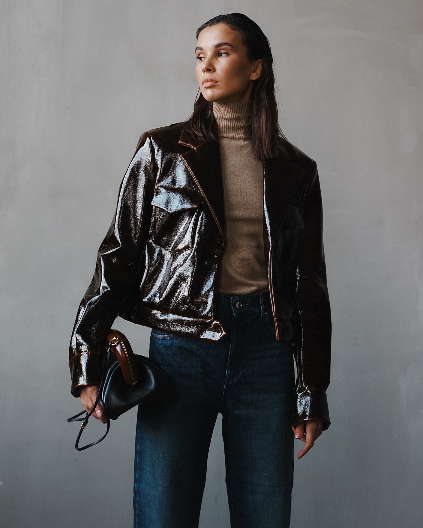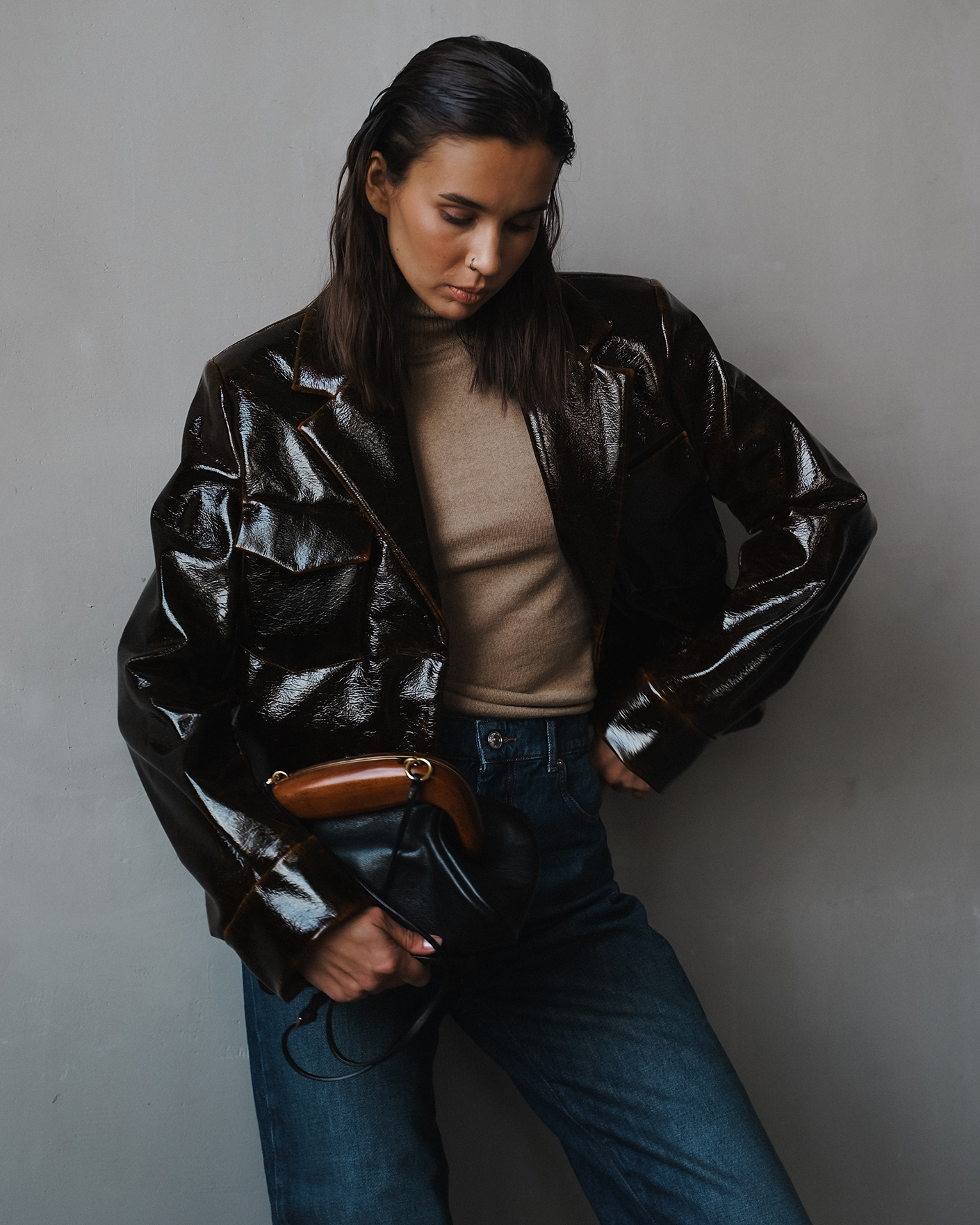 Стильная куртка Sportmax коричневого цвета с покрытием. Укороченная модель с лацканами, застежка на пуговицы, имеются накладные карманы с клапанами. Куртка станет фаворитом вашего гардероба.