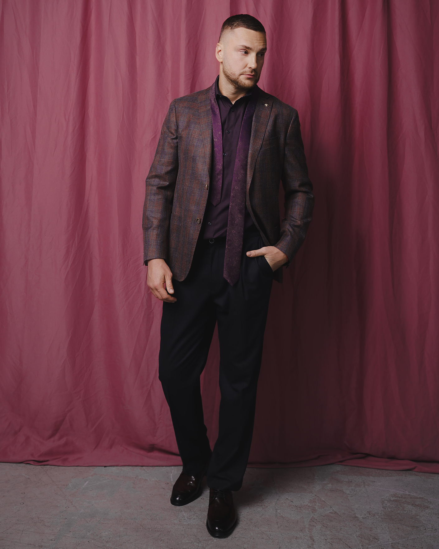 Пиджак Corneliani бордово-коричневого цвета в строчный рисунок. Модель выполнена из высококачественного сочетания шерсти, шелка и льна. Лацканы, застежка на пуговицу, накладные карманы по бокам. Пиджак отлично впишется в ваш гардероб.