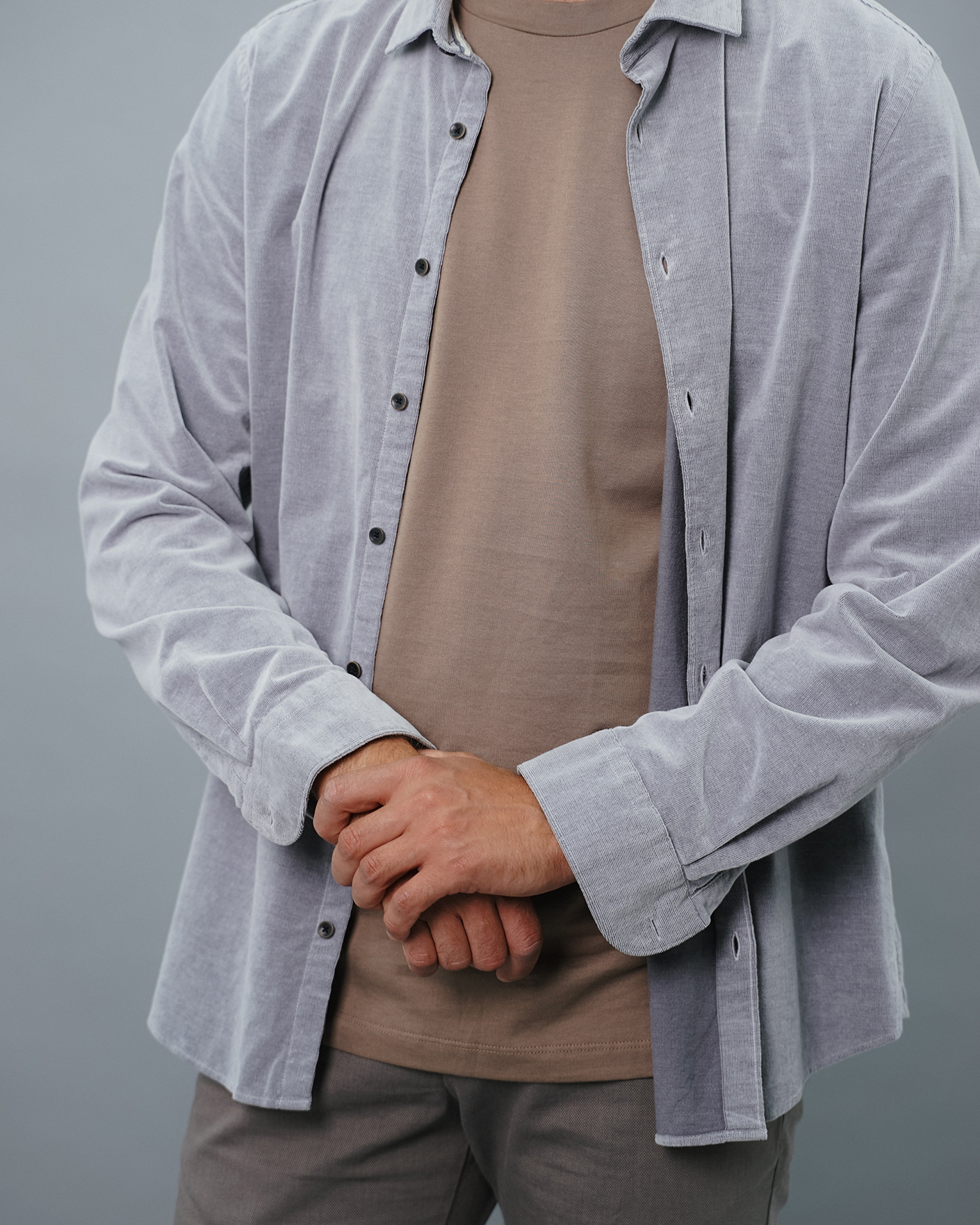 Повседневная рубашка Olymp Level Five Smart Casual серого цвета в микровельветовую текстуру. Модель с воротником Kent, планкой на пуговицы, регулируемые манжеты с небольшой складкой. Рубашка станет отличным дополнением к вашему повседневному образу.