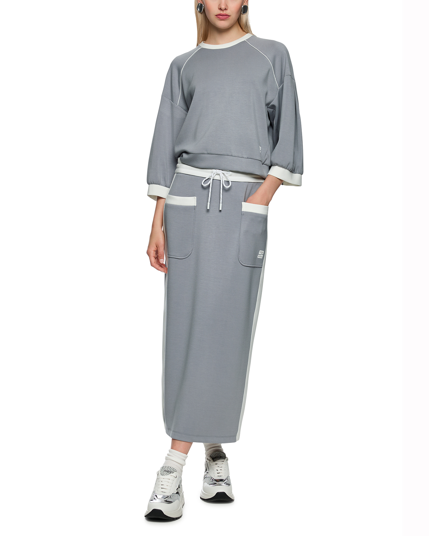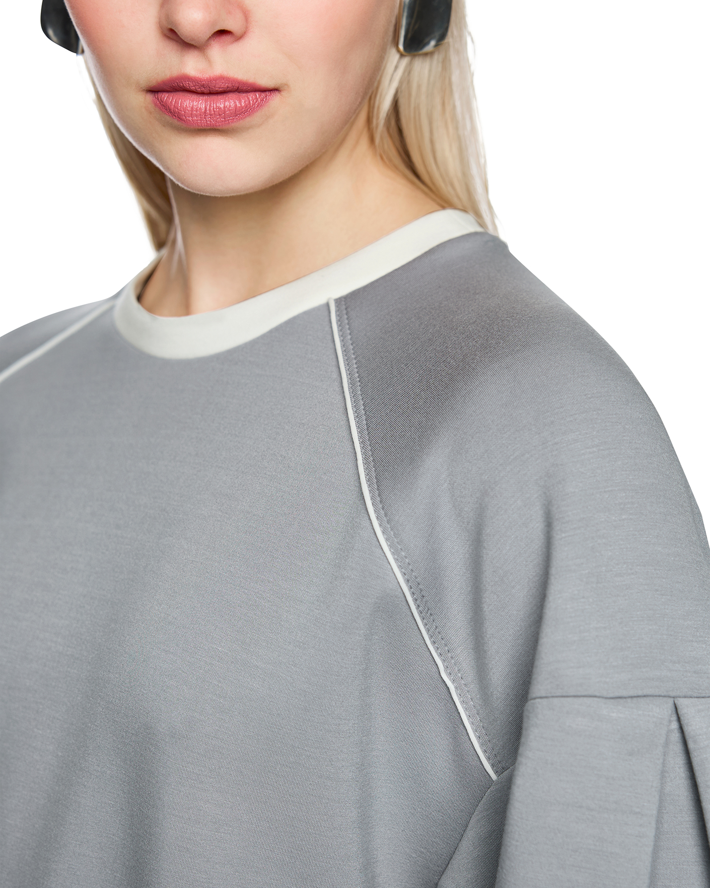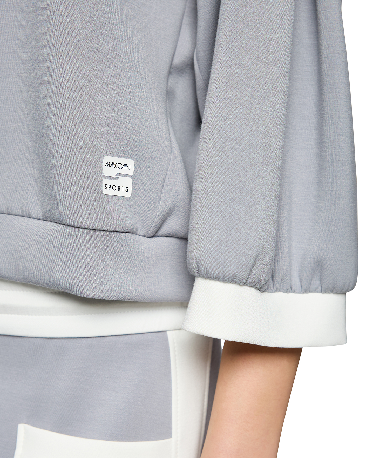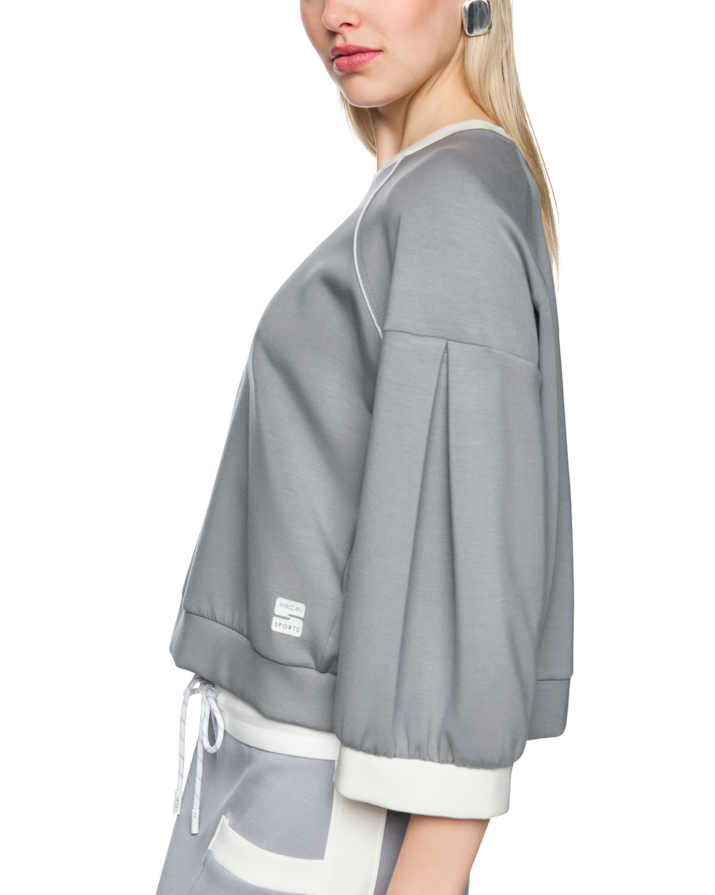 Свитшот Marc Cain Sport серого цвета. Модель с круглым вырезом, спущенная линия плеча с рукавами 3/4. Свитшот отлично впишется в гардероб в спортивном стиле.