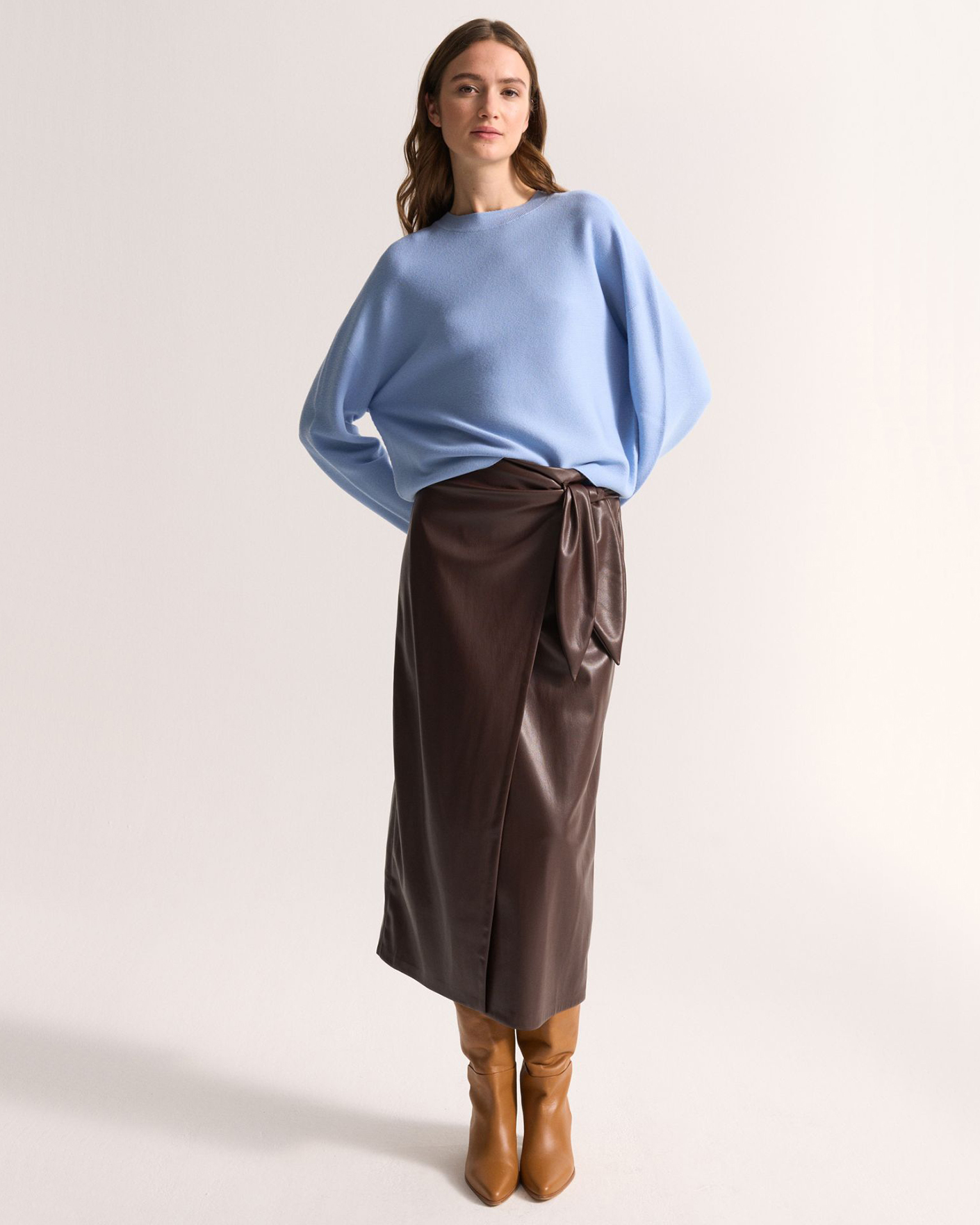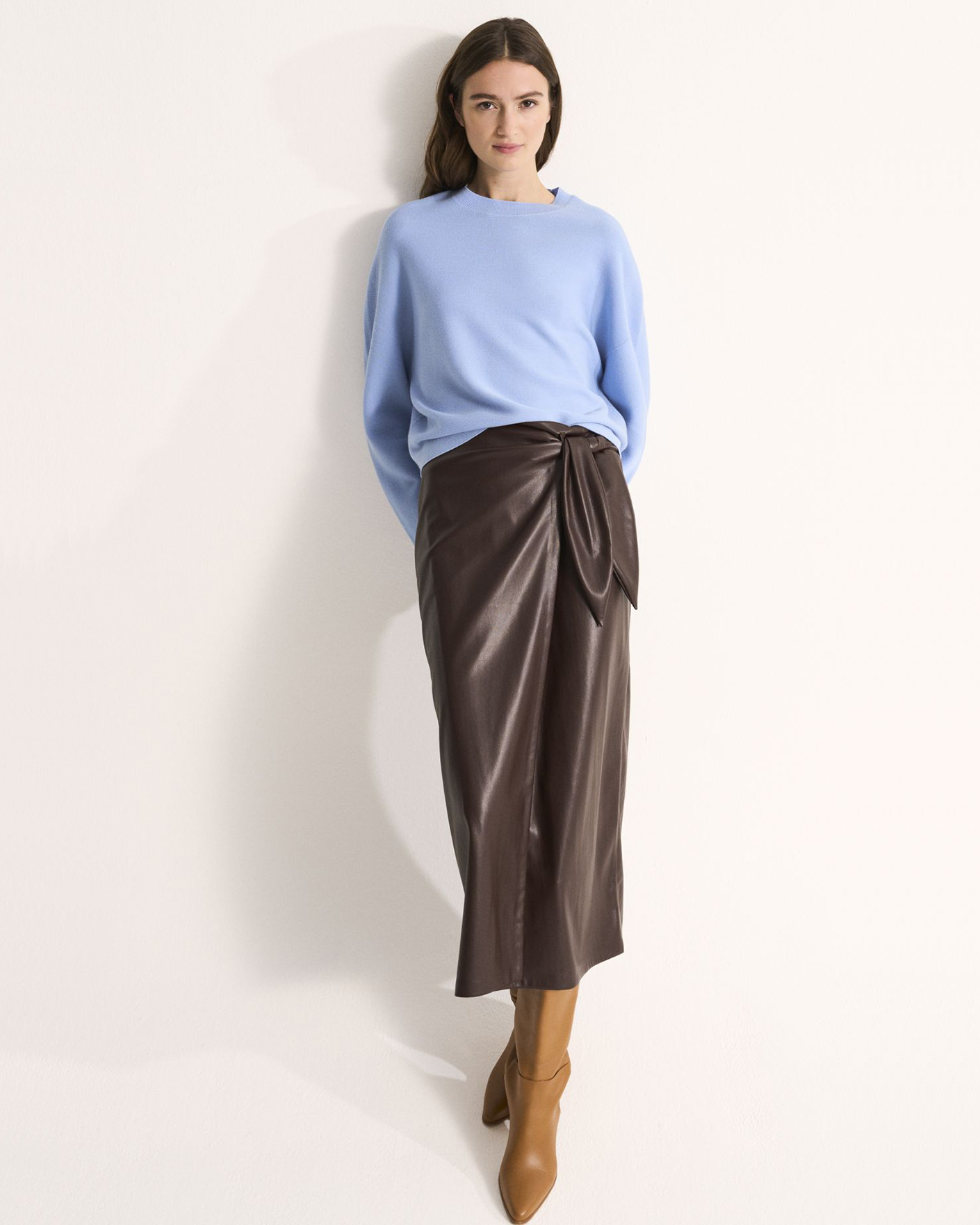 Стильная юбка-карандаш UNQ бордового цвета. Модель на запахе с завязками спереди, длина миди. Юбка-карандаш станет фаворитом вашего гардероба.