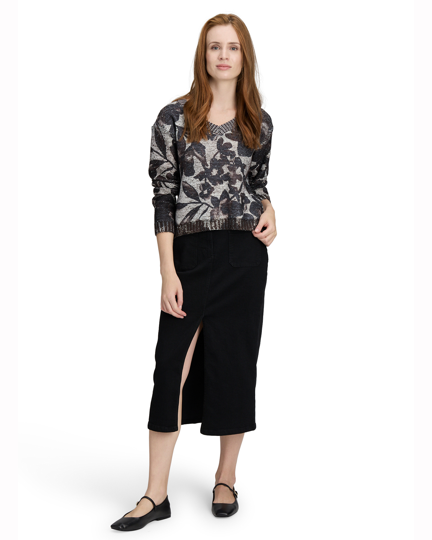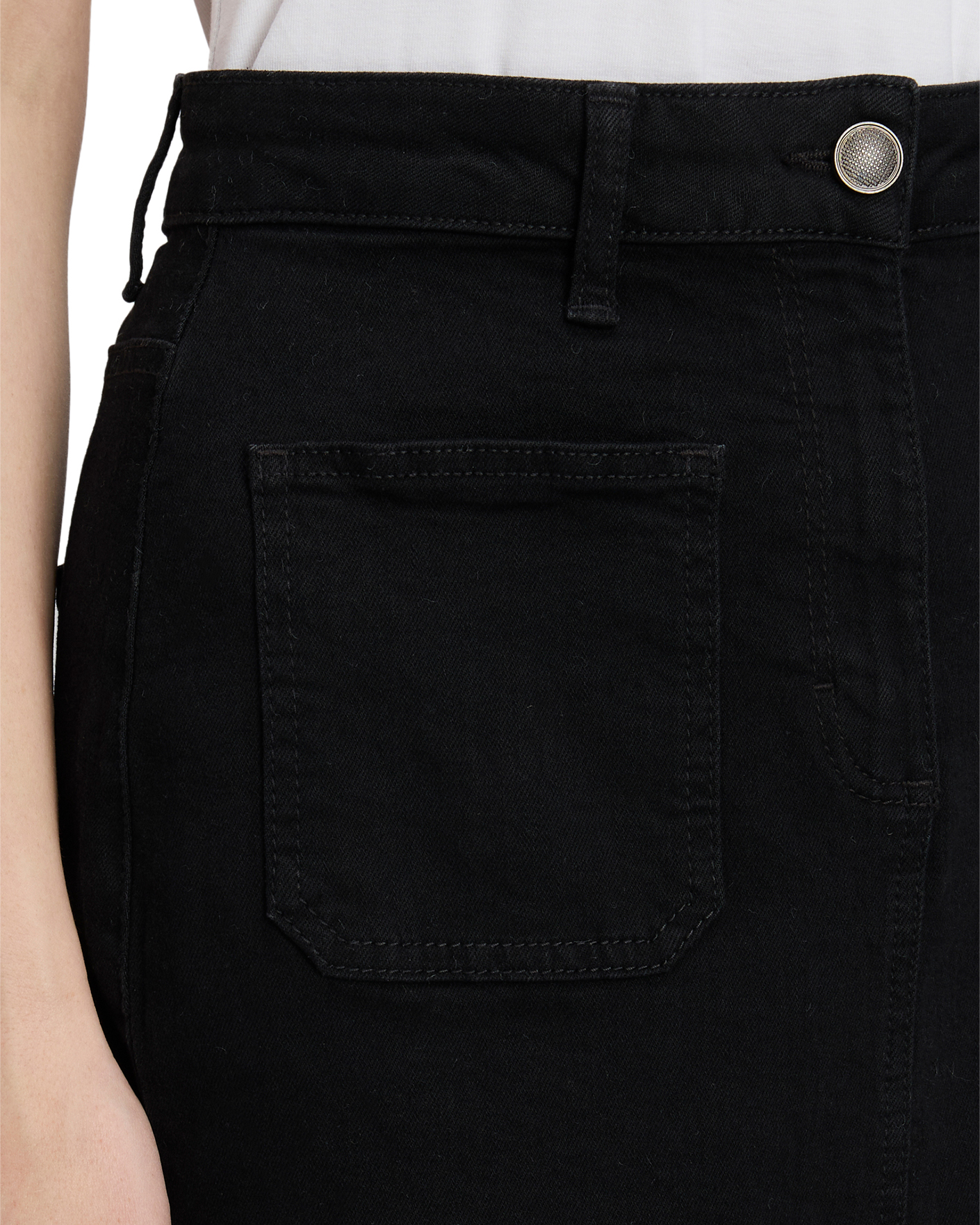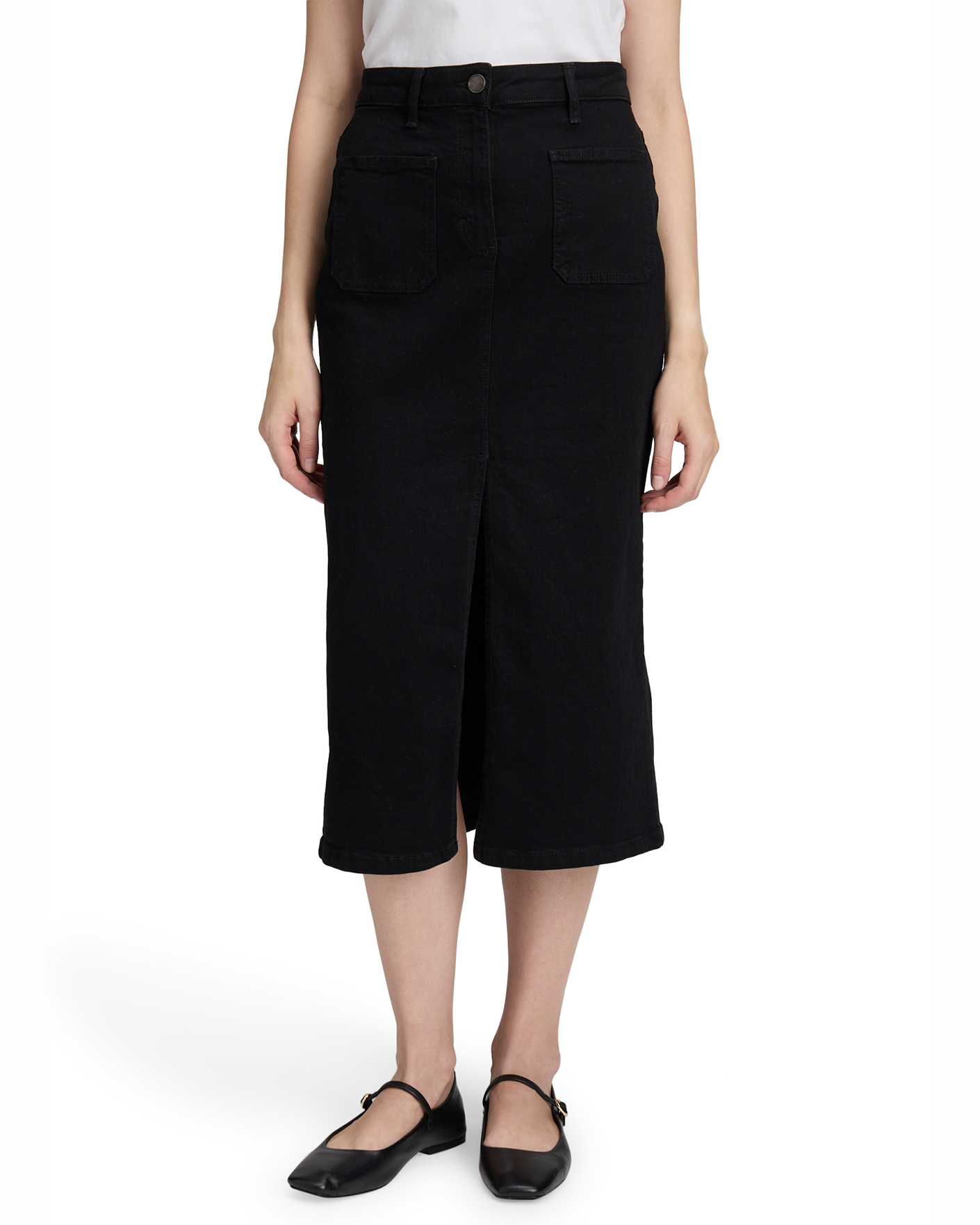 Джинсовая юбка-карандаш Betty Barclay черного цвета. Хлопковая модель на стандартной застежке, накладные карманы по бокам и сзади. Имеется разрез по центру шва спереди, длина миди. Юбка-карандаш станет незаменимой вещью на каждый день.