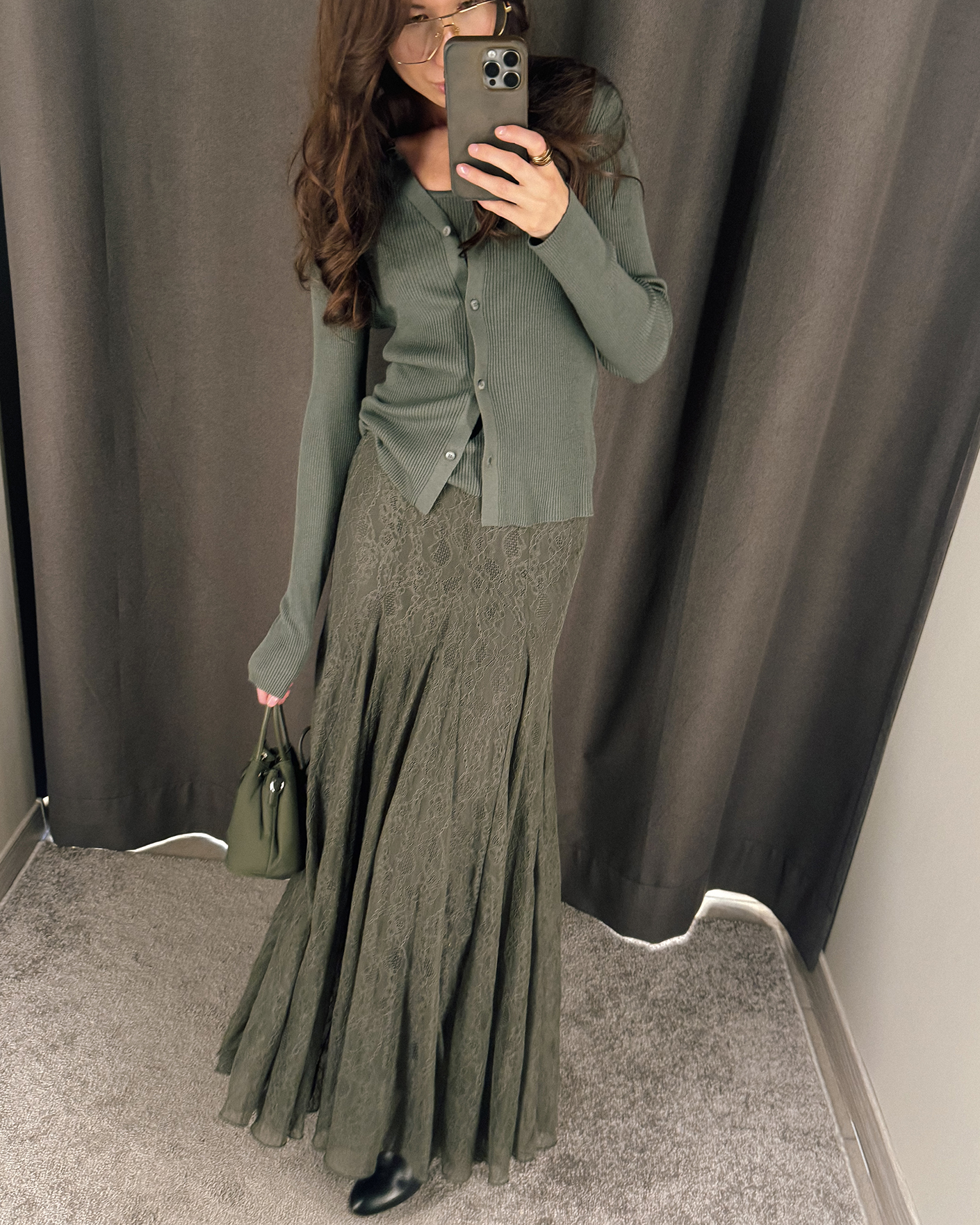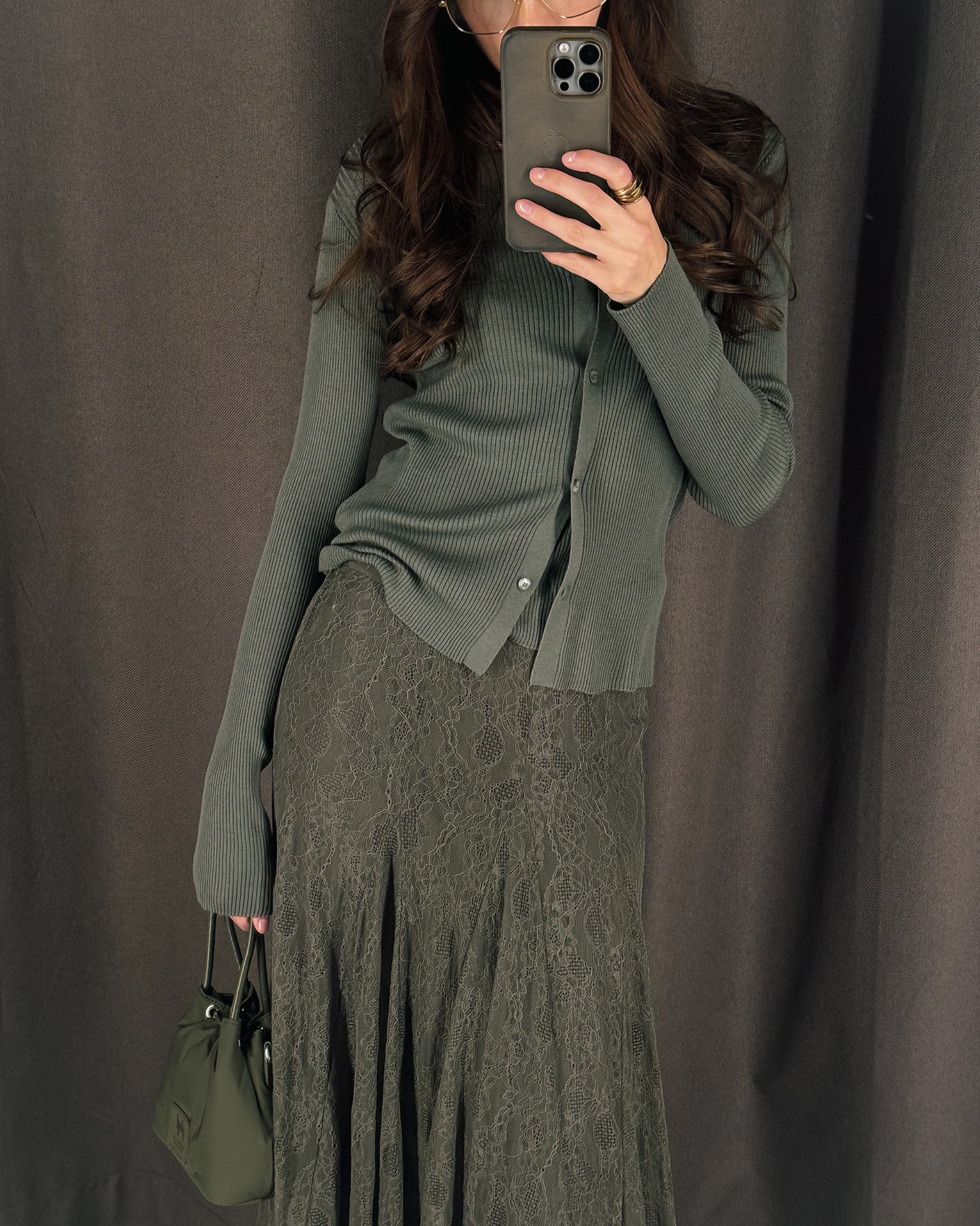 Юбка полусолнце Marella цвета хаки в кружевной рисунок. Модель высокой посадки, длина макси. Юбка отлично впишется в ваш гардероб.