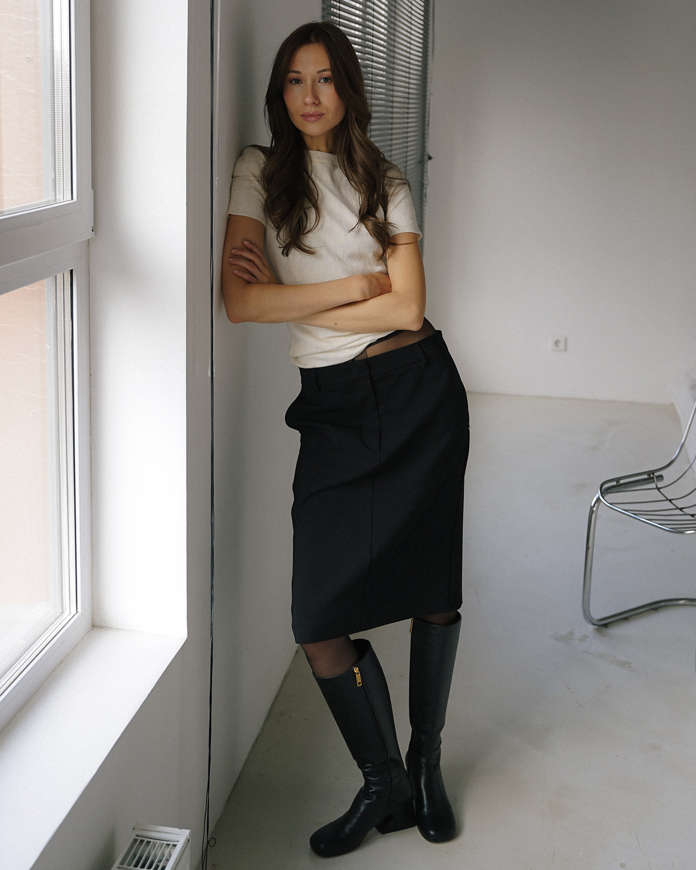 Юбка-карандаш Sportmax черного цвета из 100% натуральной шерсти. Модель на скрытой застежке, имеются врезные карманы по бокам и сзади. Юбка-карандаш - классика делового стиля.