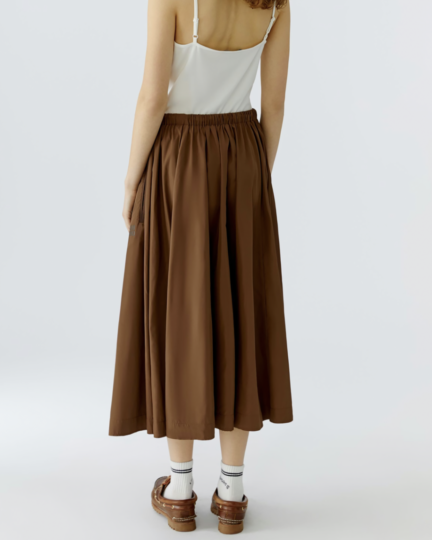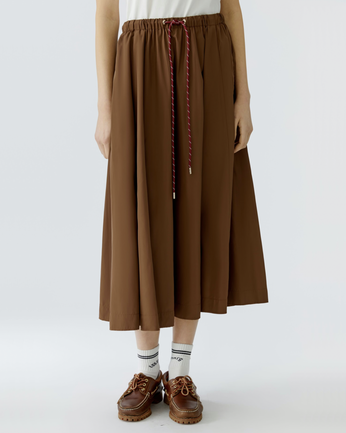 Стильная юбка OUI коричневого цвета. Модель высокой посадки на эластичном поясе со вставным шнурком. Имеются врезные карманы по бокам, длина миди. Идеальная юбка для ваших стильных образов.