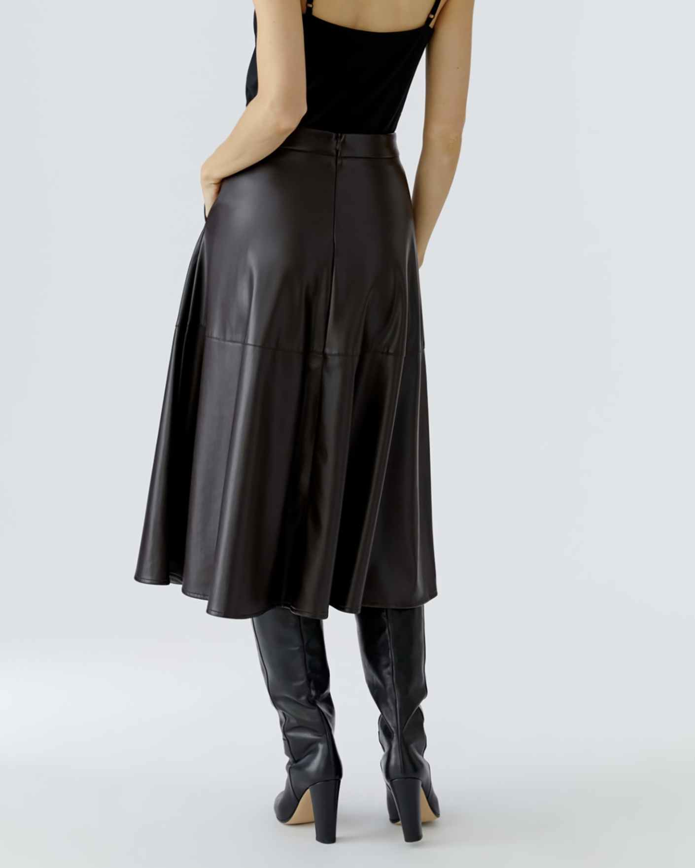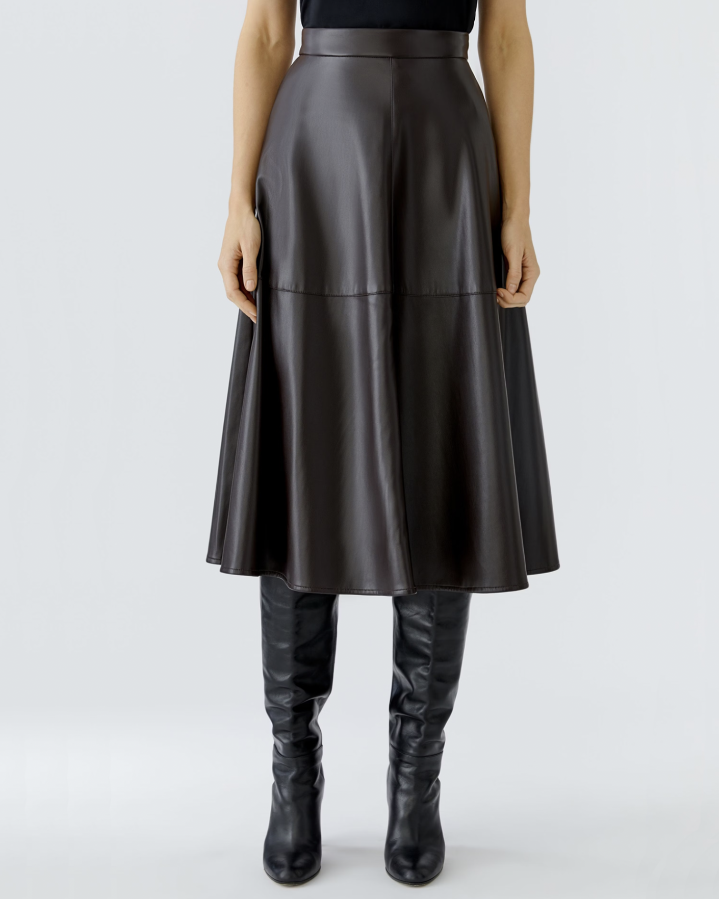 Стильная юбка OUI темно-коричневого цвета с покрытием. Модель высокой посадки, застежка на молнию сзади, врезные карманы по бокам, длина миди. Юбка станет фаворитом вашего гардероба.