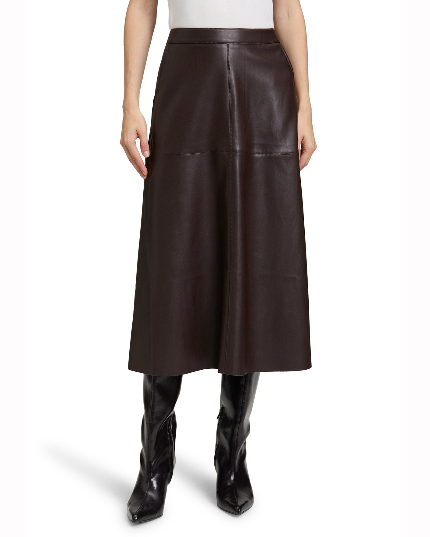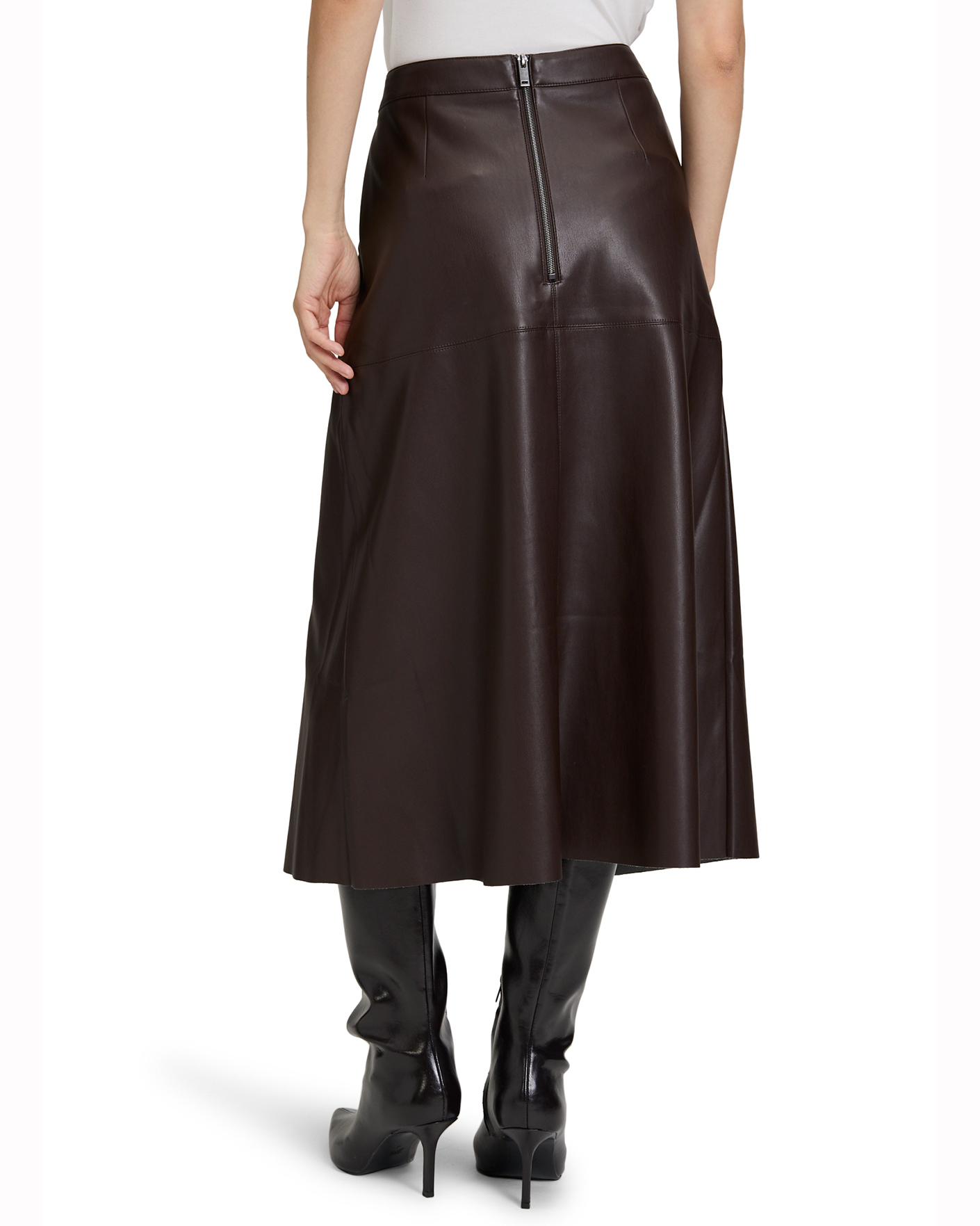Юбка-трапеция Betty Barclay бордового цвета с покрытием. Модель на высокой посадке, застежка на молнию сзади, врезные карманы по бокам, длина миди. Юбка-трапеция отлично впишется в ваш гардероб.
