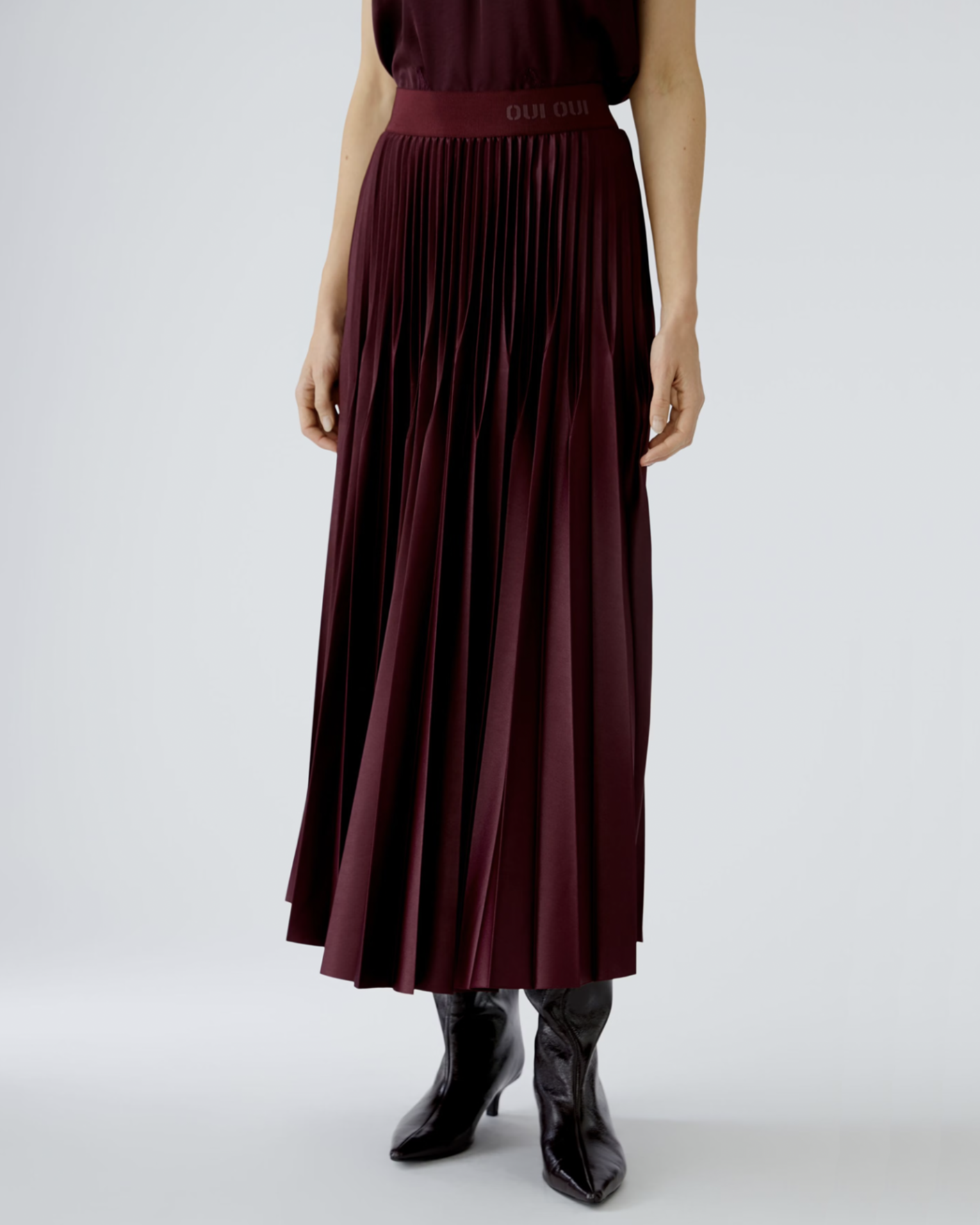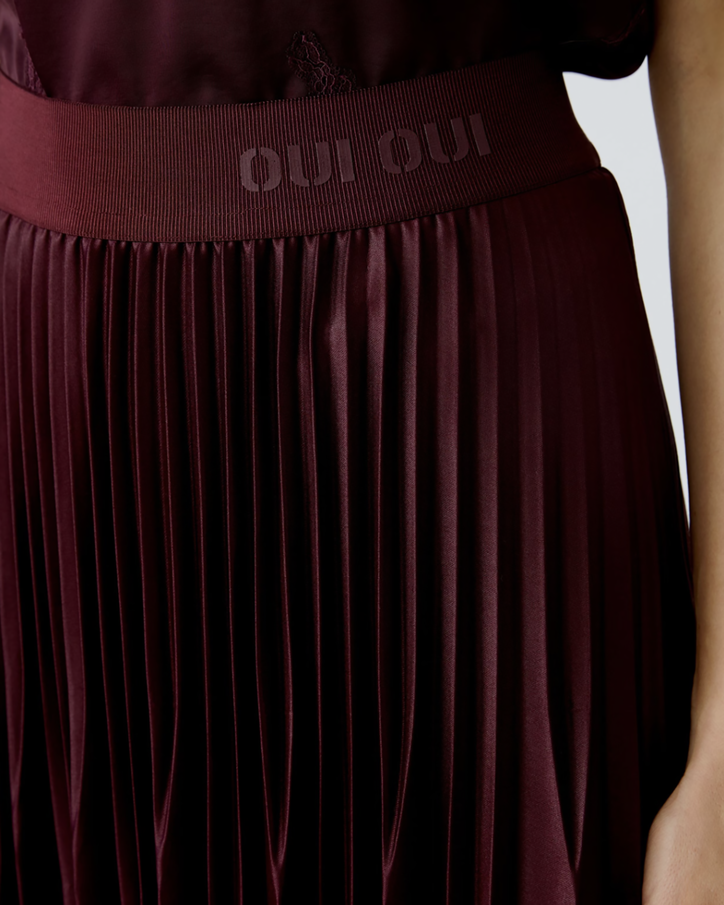 Юбка-плиссе OUI вишневого цвета. Модель на эластичном поясе, что обеспечивает комфортную посадку. Стильная юбка-плиссе станет фаворитом на каждый день.