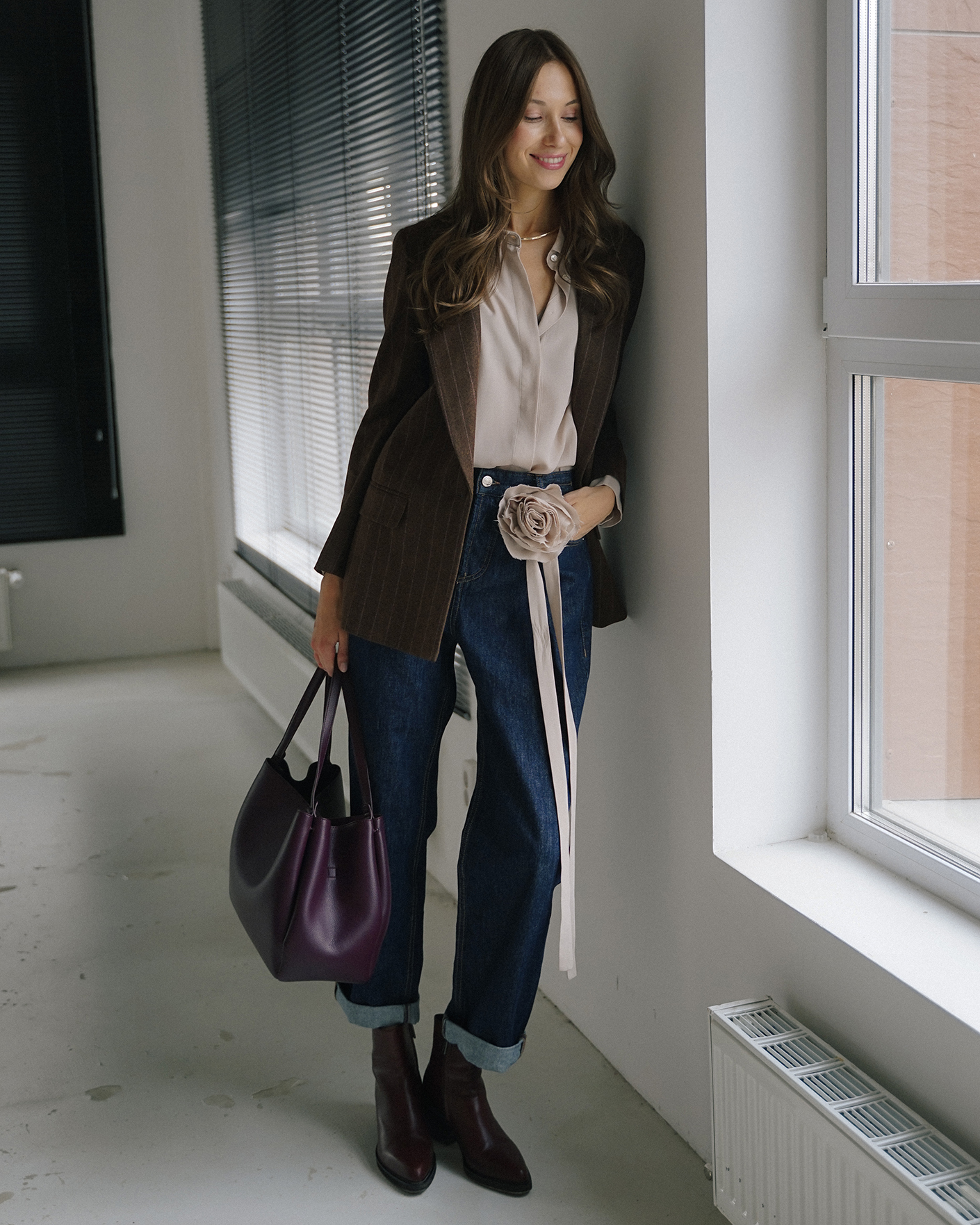 Жакет Marella розово-коричневого цвета в узкую вертикальную полосу. Модель свободного кроя, с лацканами, застежка на одну пуговицу, имеются врезные карманы с клапанами по бокам. Жакет можно сочетать с блузой, топом, рубашкой, джемпером, водолазкой, брюками, юбкой и джинсами.