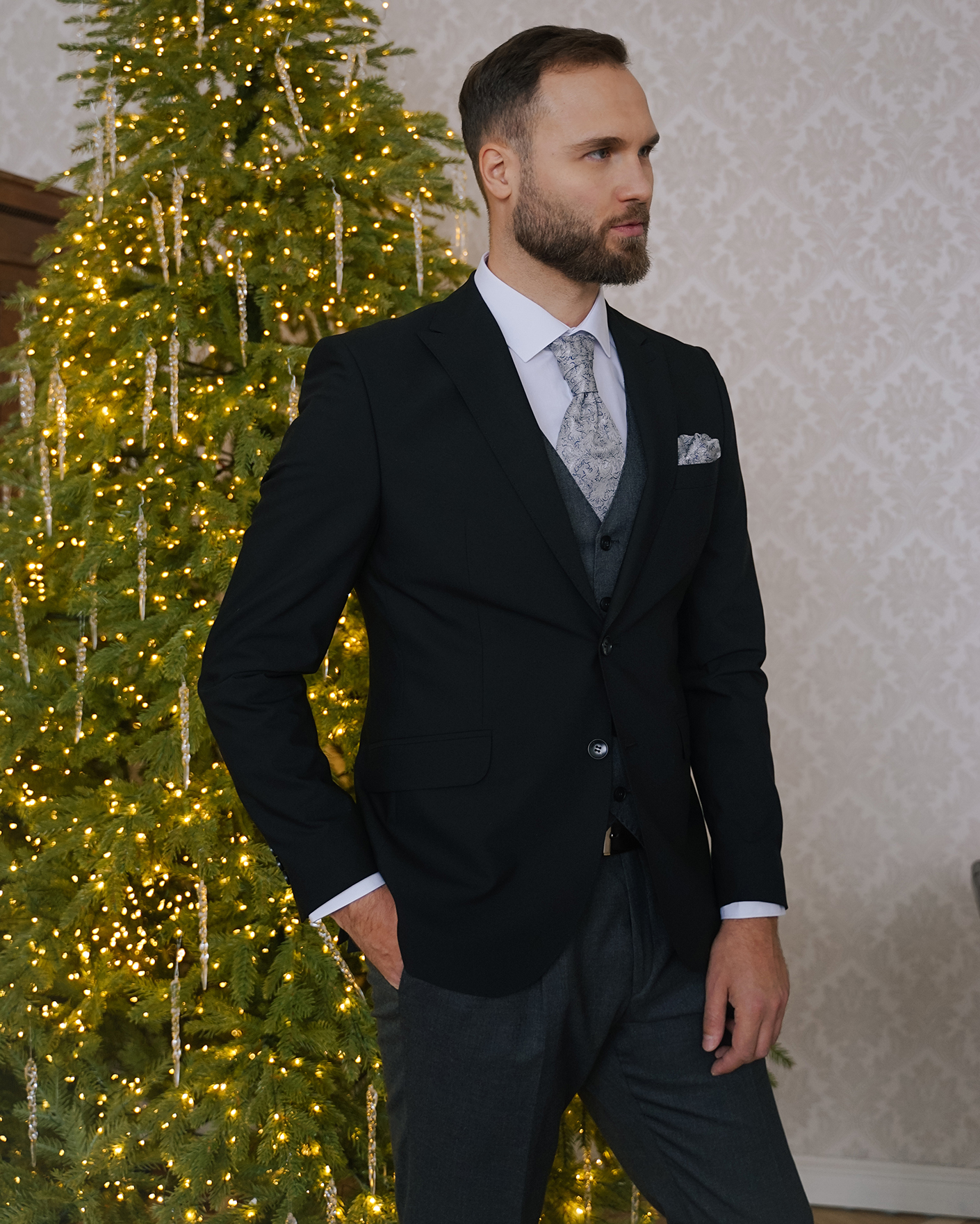 Жилет Truvor серого цвета в мелкий оптический рисунок. Модель с V-образным вырезом, застежка на пять пуговиц, врезные карманы по бокам и на груди. Жилет можно сочетать с футболкой, рубашкой, пиджаком, брюками и джинсами.