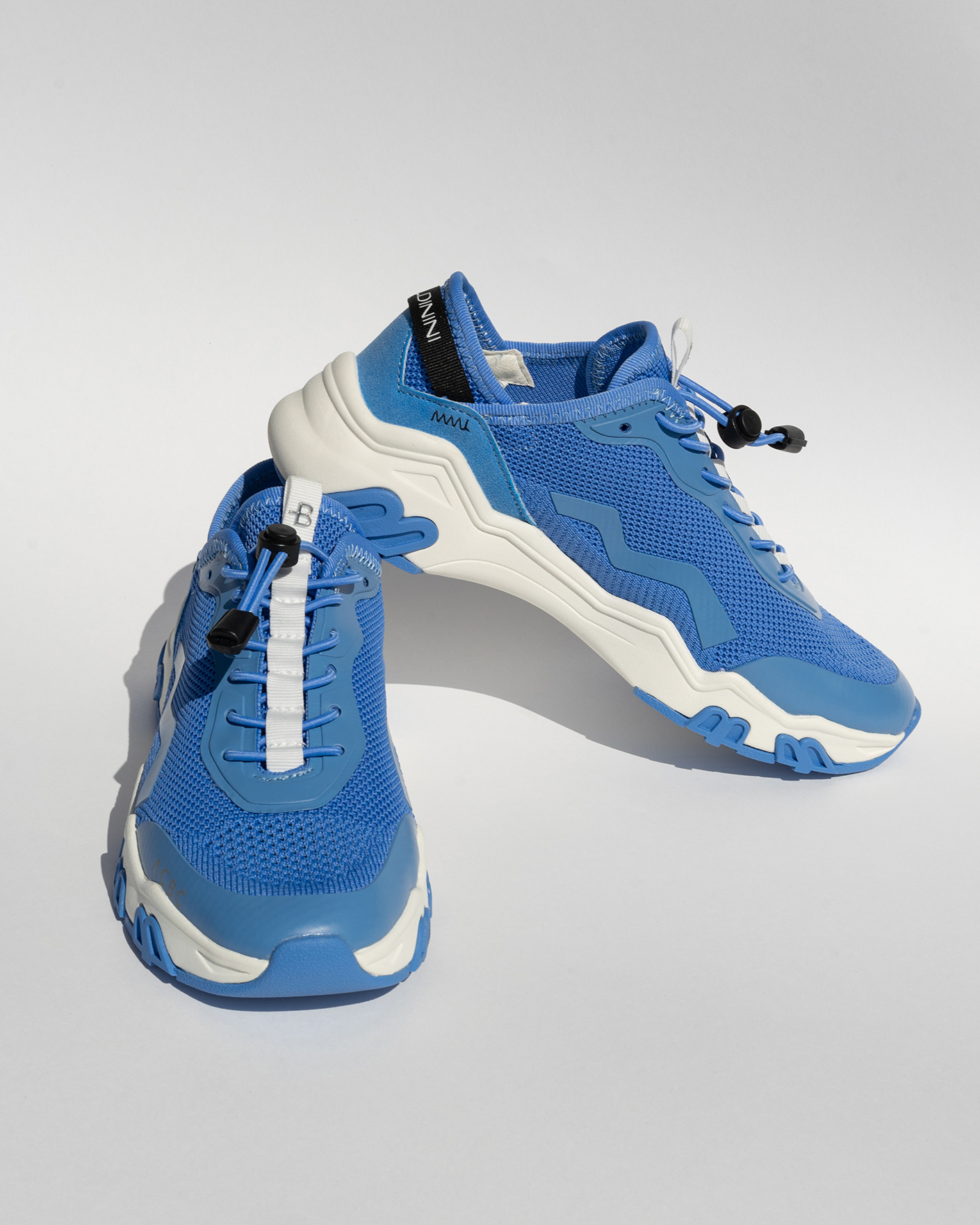 Кроссовки Baldinini бело-голубого цвета выполнены из комбинированных текстур. Модель на шнурковке и акцентными деталями. Эти кроссовки помогут сделать любой образ стильным и актуальным.