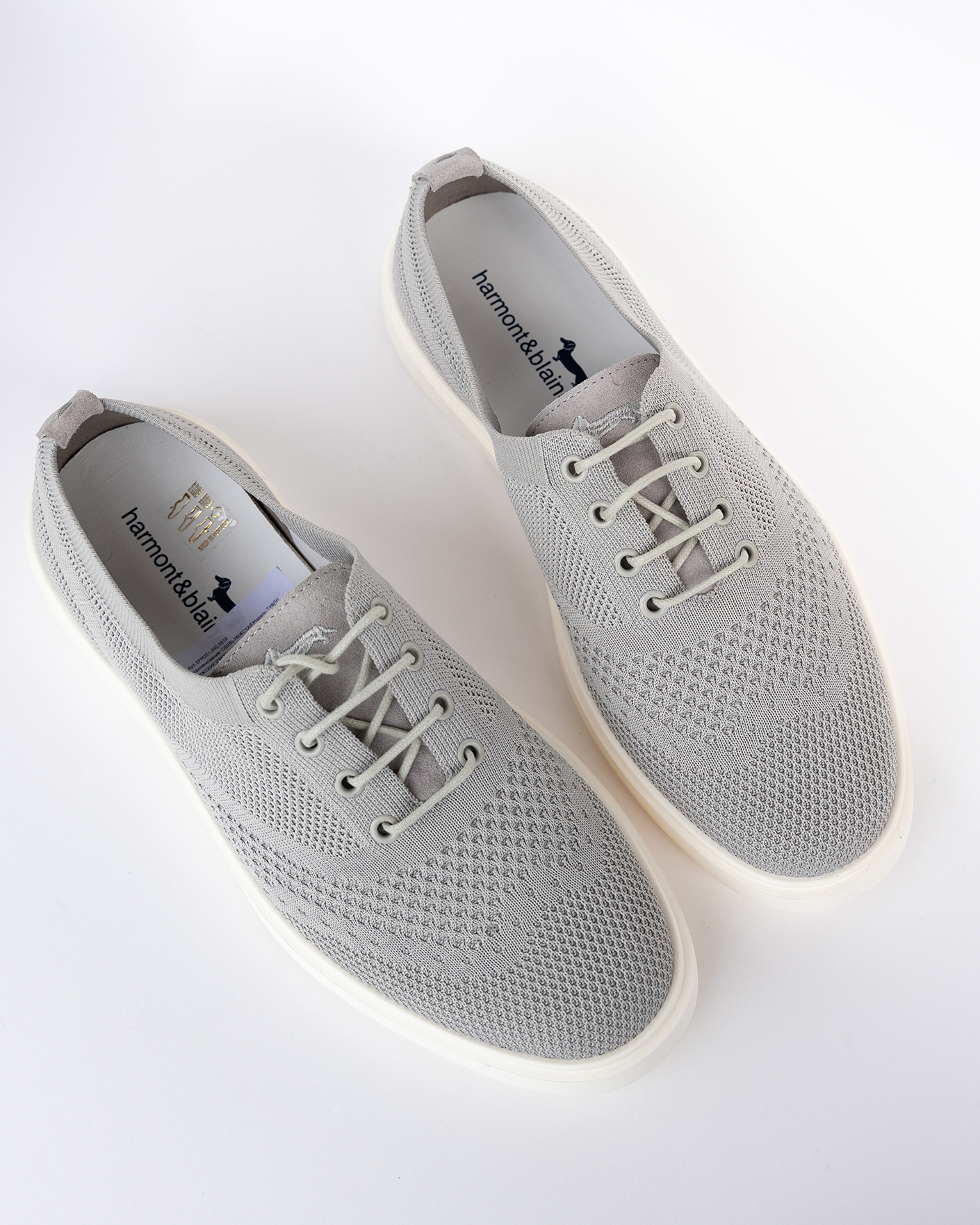 Сникеры Harmont&Blaine серого цвета в текстурный рисунок. Модель на шнуровке, белой подошве. Удобные и стильные сникеры станут фаворитами на каждый день.