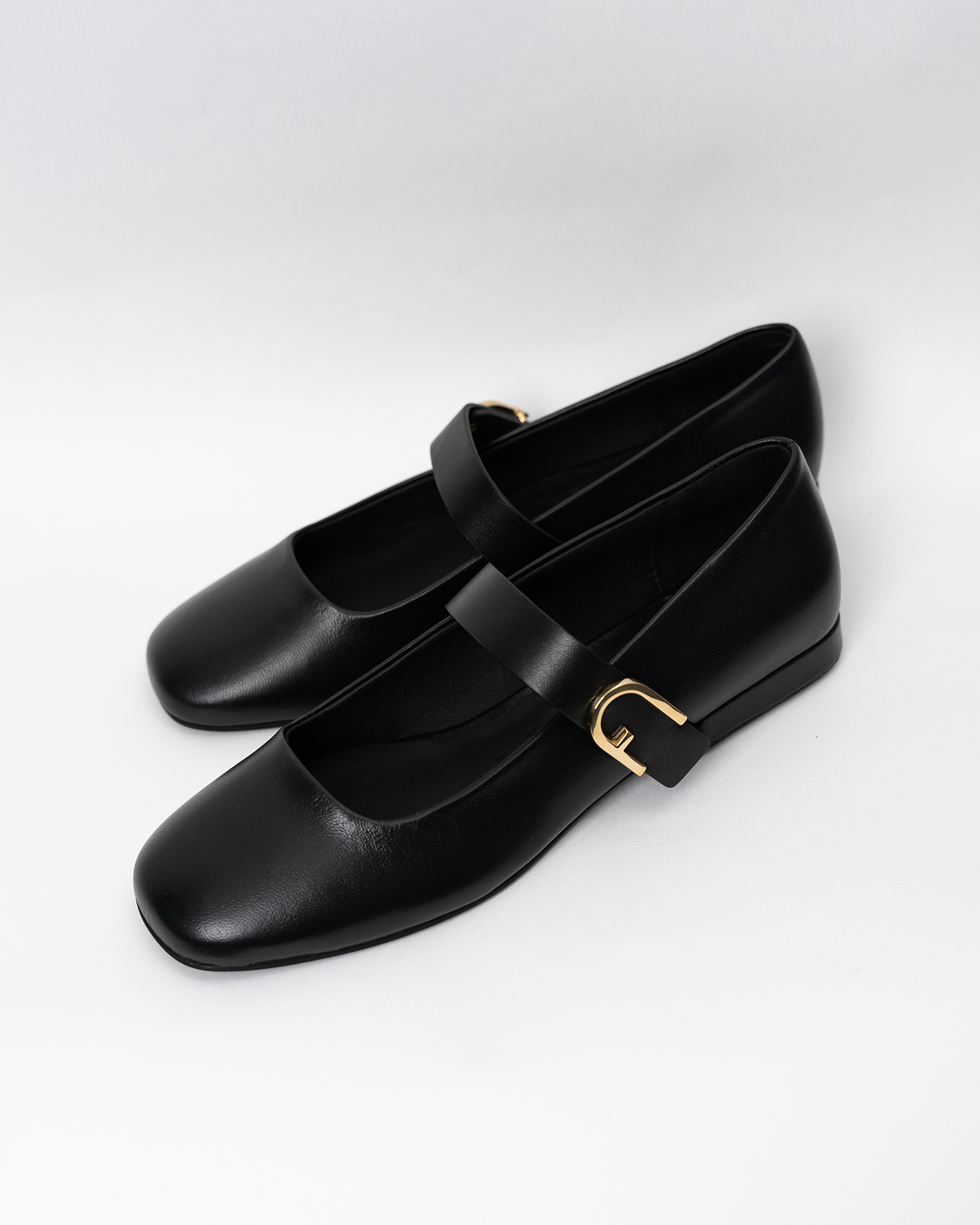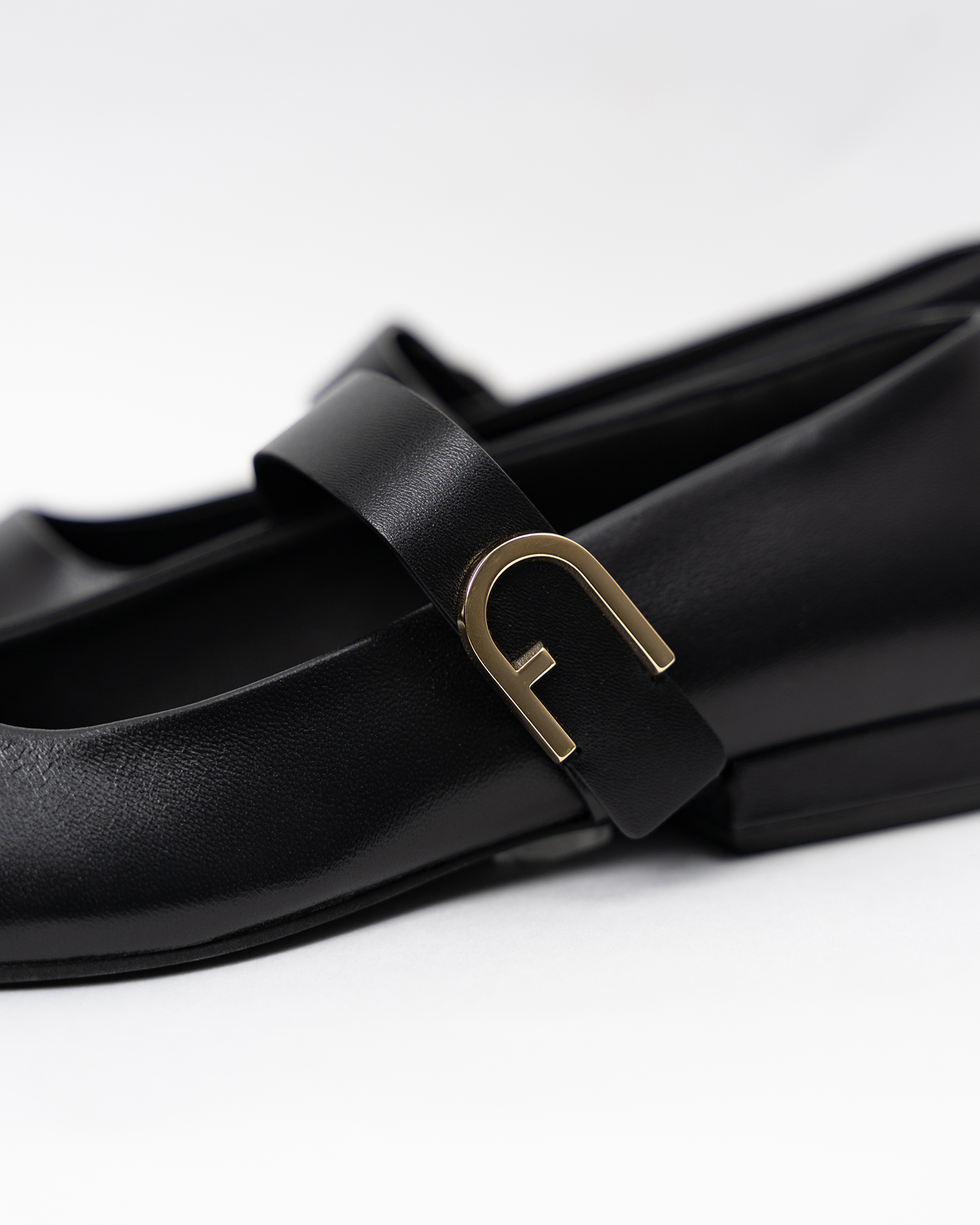 Стильные балетки Furla черного цвета из 100% кожи. Модель с округлым носом, декор в виде логотипа на ремешке-застежке, каблук 2 см. Балетки - универсальная и комфортная обувь на каждый день.